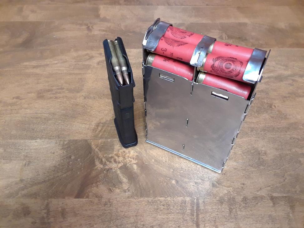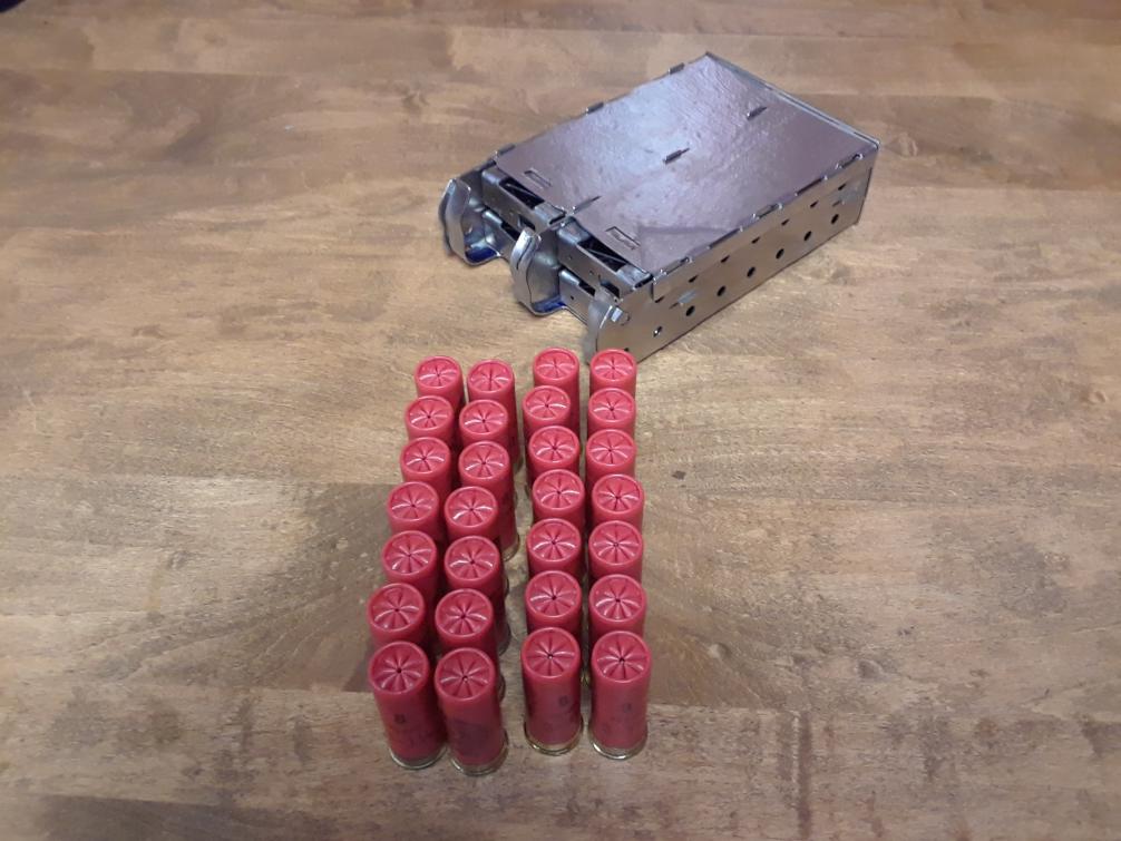 A problem that you’ll run into for quad loading is that you can’t get your fingers wrapped around the shells for the initial “pluck”. Looks like you won’t have a solid grip on them when they’re released and the fumbling will offset any speed you’ve gained by loading quads.