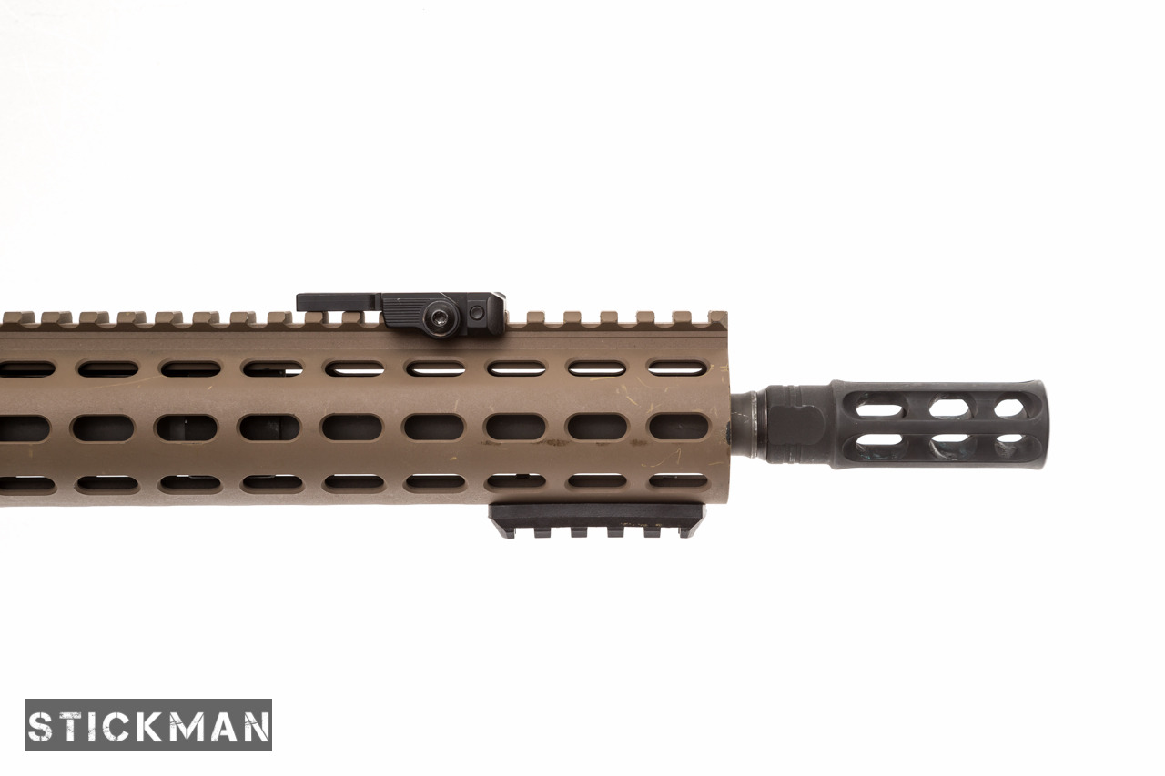 The folding sights are the lowest profile that I’ve ever come across, and since they aren’t made anymore, there isn’t much point in talking about them. I will say that they were branded by Rainier Arms, though my friends at RA are not the ones who manufactured it. I don’t recall if RA had any production changes, or if this was a model simply co-branded (like Troy sights).
