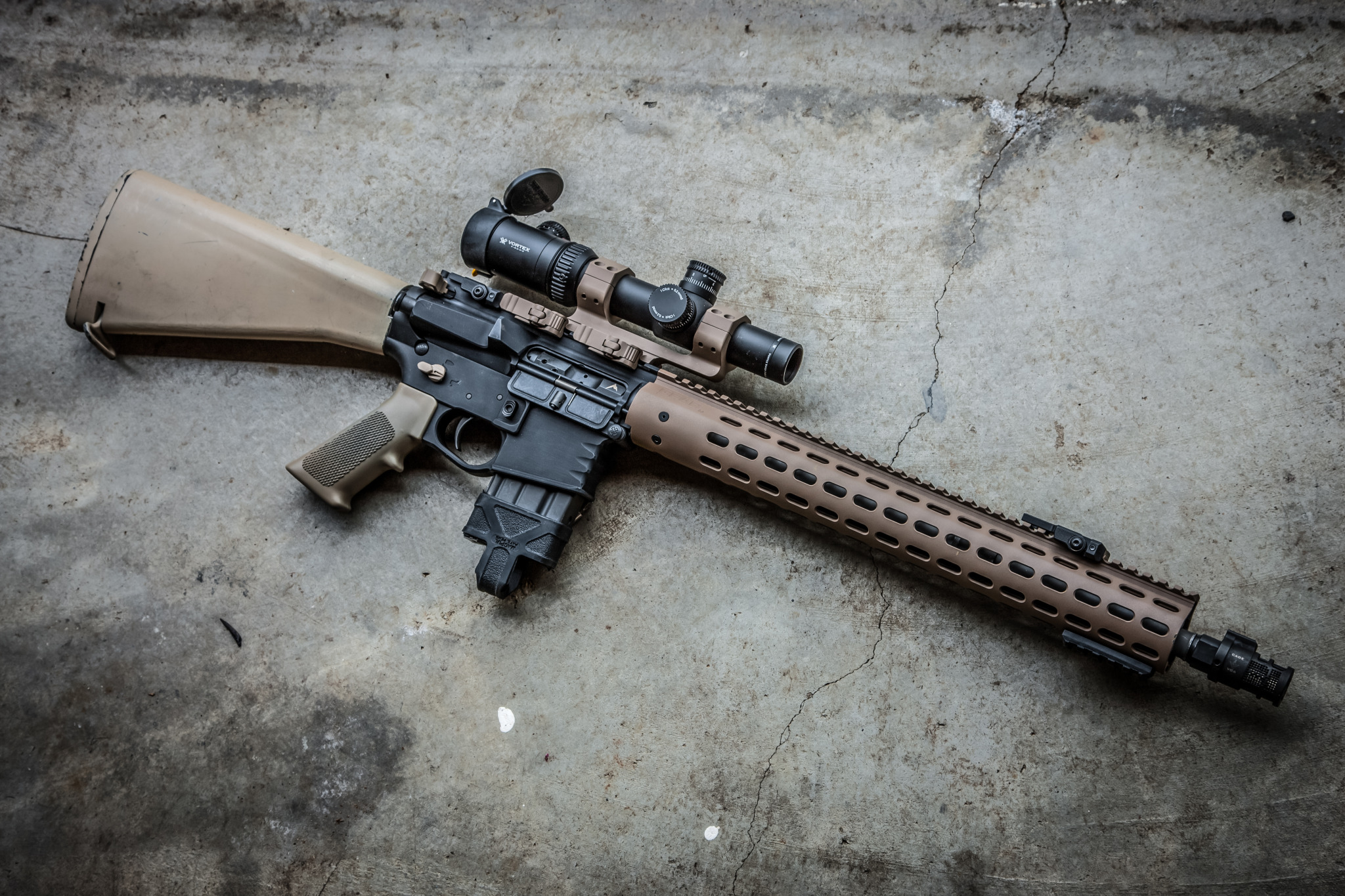 This next build went though several iterations, but I really do feel that it is in its final form. The idea for this weapon was built out of a few different wants and needs. After tearing my shoulder apart pretty badly in an on duty “event”, there was an immediate need for surgery. The shoulder still gives issue, though that’s just par for living a combative lifestyle, it doesn’t change that there are days that even a few pounds of difference on a long gun can leverage things the wrong way. Enter the desire for a light weight long gun that is highly accurate, and in the AR15 vein.