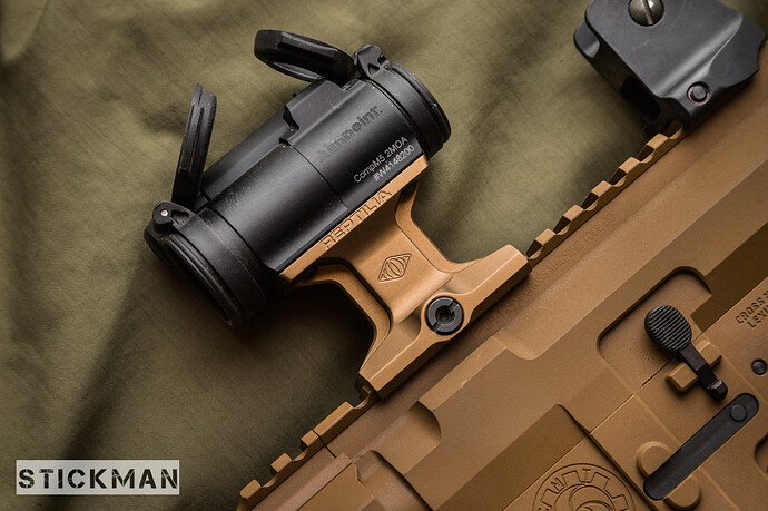 After the optic we also have the optic mount. I’ve slowly switched out many of my optics to mounts developed and manufactured by Reptilia. Reptilia mounts are of billet 7075-T6 aluminum with a Milspec Type III hard anodized finish. The steel portions are Nitrided 4140 steel. Reptilia also brings three choices of height for the T1, T2, H1, H2, M5 (along with all the other companies that now use this platform), and also anodized in three colors. However, for me, that isn’t what makes Reptilia the go to mount on the market. The difference becomes the team that designed the items, the end user and specific requests they have (usually mil units), and the incredible security in which the mounts give the optic. Ask anyone who has a Reptilia scope mount what it was like laying the scope in the cradle… for myself it was almost like a suction feeling as it went into place. Absolutely unbelievable.