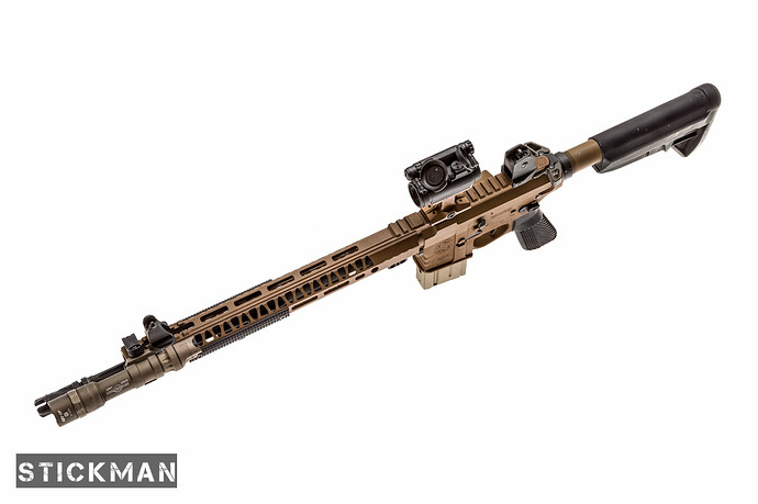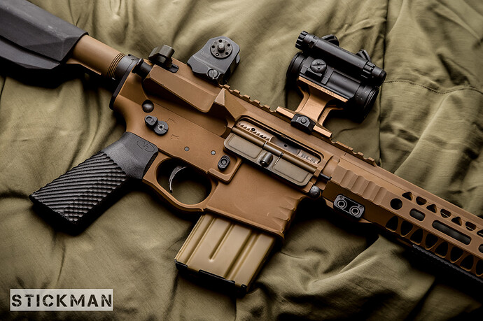 The receivers for this build are a billet upper and lower from Cross Machine and Tool. I’ve mentioned before how impressed I am with the level of detail that Jeff Cross puts into his products. The fit between these receivers is phenomenal. Looks are highly subjective, and most AR15 owners already have an idea of what they do and don’t like the look of. I personally rate the looks of these very high. The billet uppers (there are a few different versions) are 7075 T6 Aluminum, instead of the more usual 6061 series aluminum. A lot of people don’t stop to think about component material, but if you are building something for accuracy or longevity, these things get important quick. If you are a machinist, you probably like the idea that Jeff does all his uppers and lowers on a 5 axis machine. The website states the material choice alone gives a " 65% increase in strength & rigidity over 6061 aluminum receivers." That is good stuff in my book, and while I tend to be more of a grunt than a mechanical engineer, even I can understand the benefits. Lastly, the upper receiver walls are thicker for added support and rigidity.