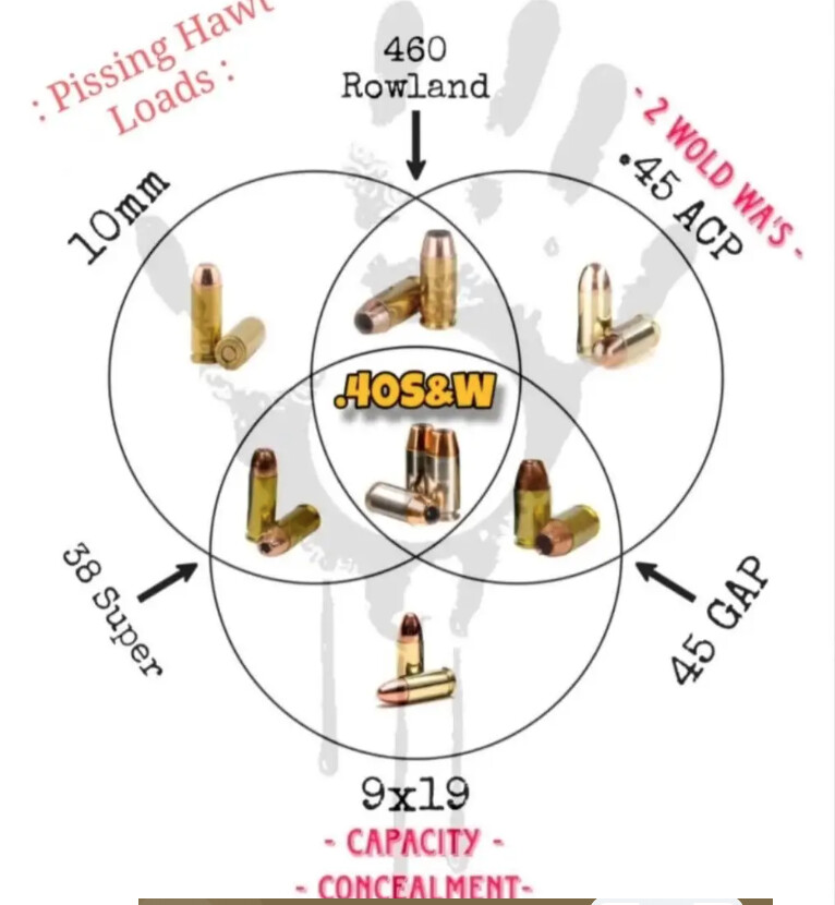 It’s not the men’s line of pistols, that would be 10mm. So .40 S&W is the tranny line of pistols, equivalent to cutting your dick off and taking estrogen.