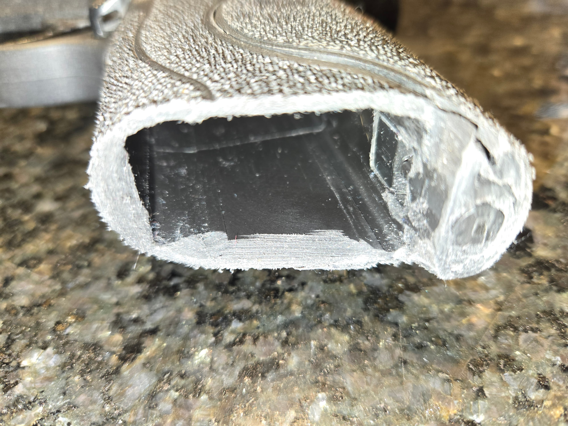 The close-up looks terrible. But the chop does everything i wanted. The backstrap is still changeable. It just takes a screw driver to access the square window in poke the retaining rod to rotate and then push it out.Pics are of a 10 rd mag with spacer & 8 round “Subcompact” mag.