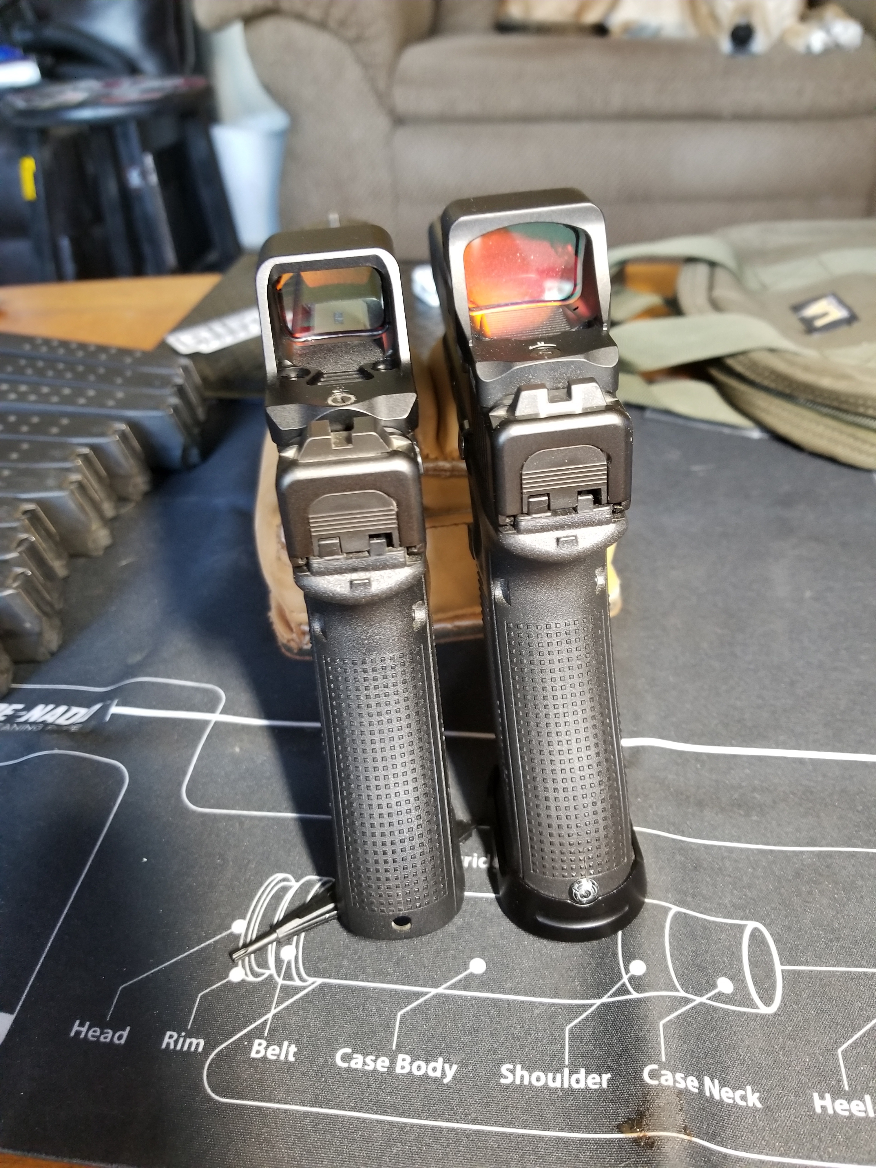 I got my Osight C mounted up to one of my G22s with a 357 sig barrel. Osight left and 507 Comp right. The Comp is a monster and I love it. But if it’s just a little too much for someone, the C definitely trims some bulk.