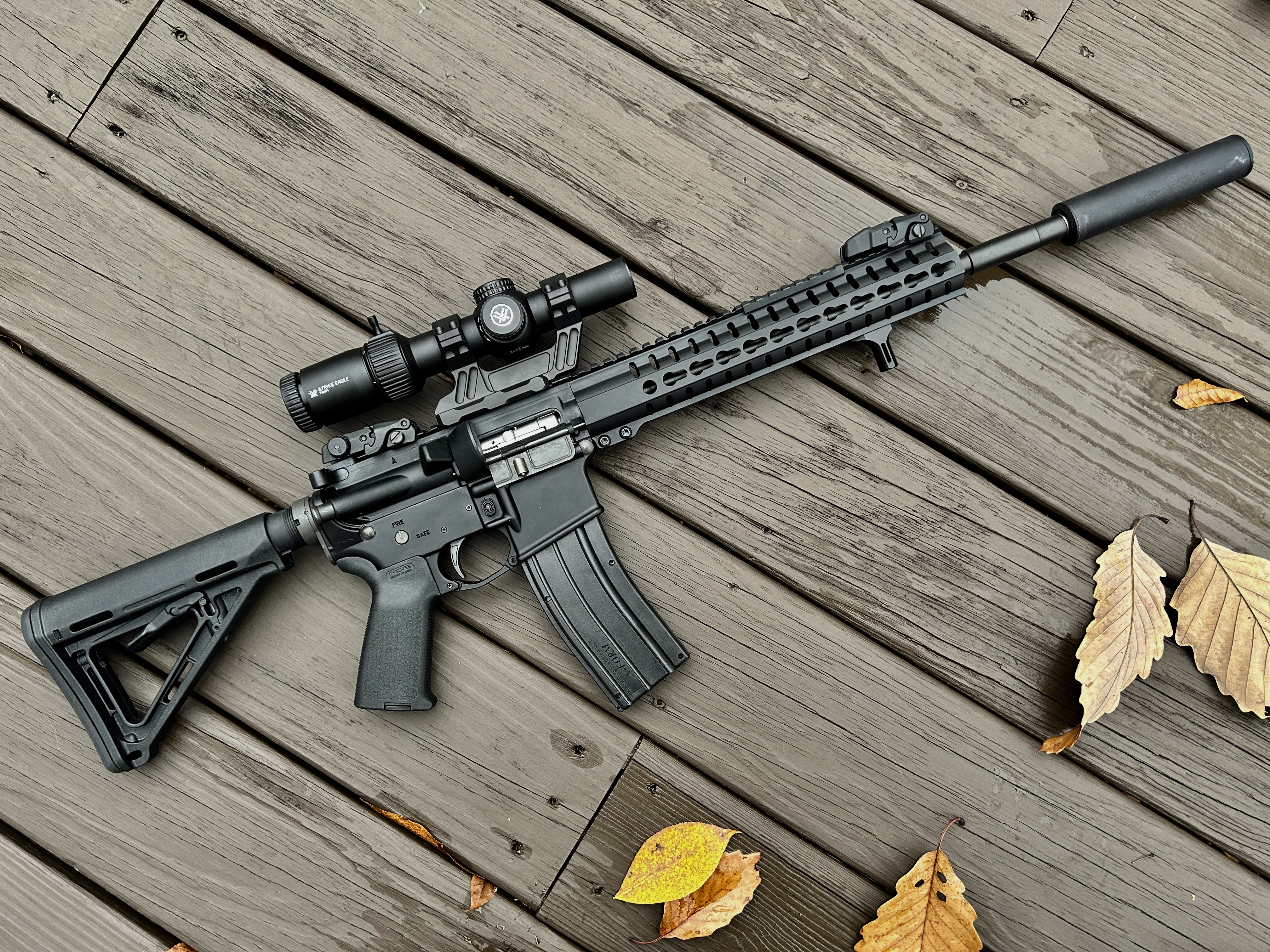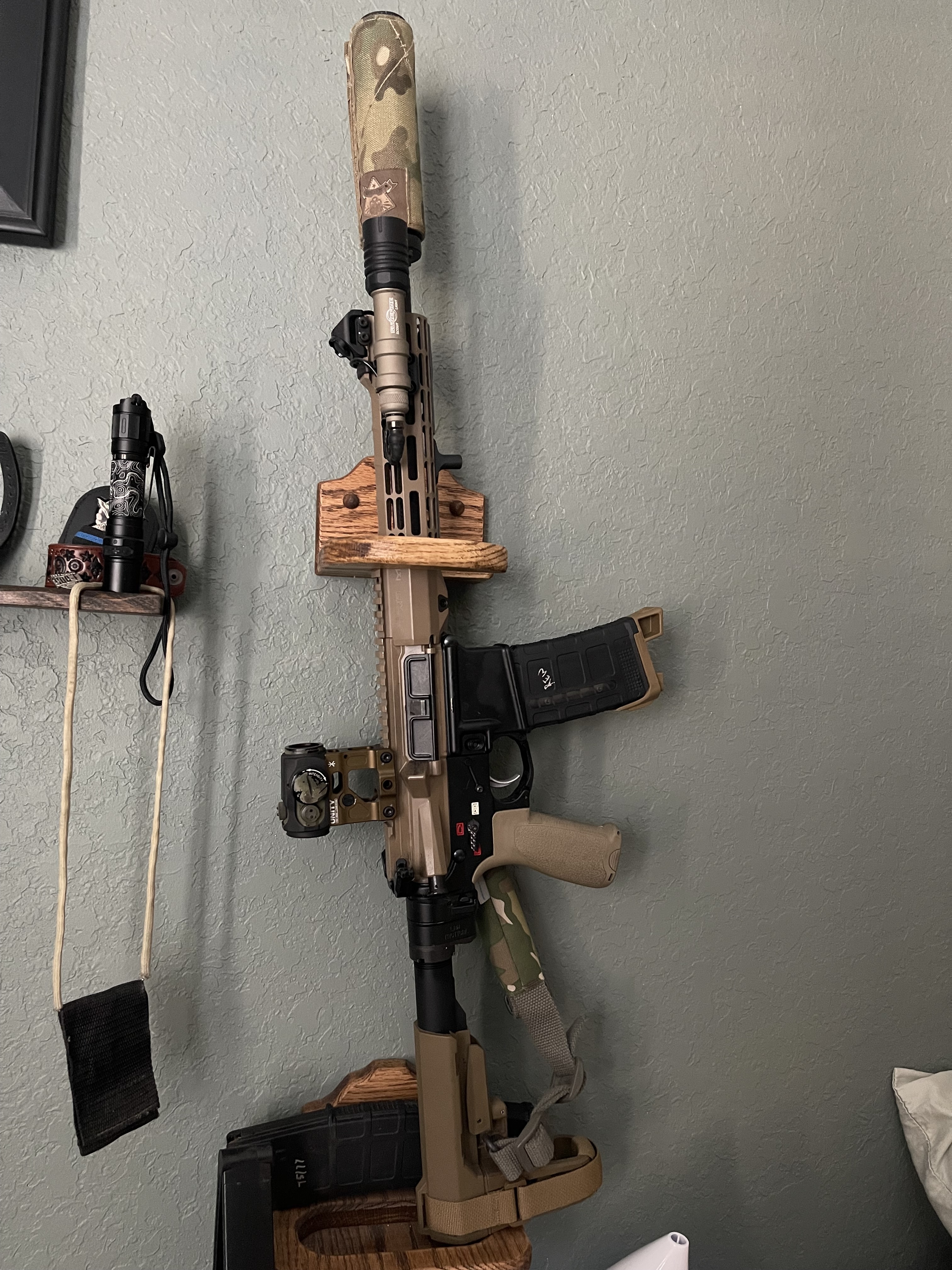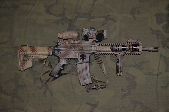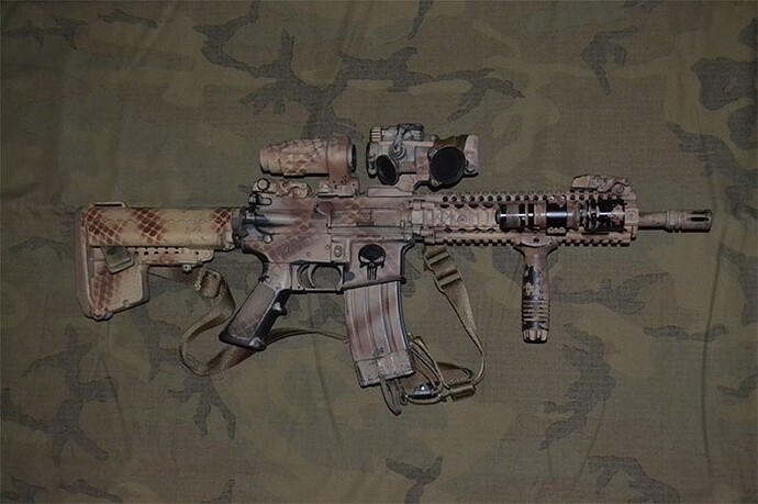 Swapped out Stock for Vltor, KAC RAS for Danial Defense, added Aimpoint 3x on a flip, Magpul front, and a Surefire from '05, VTAC sling, and a new rattle can job. Oh, and a punisher skull.