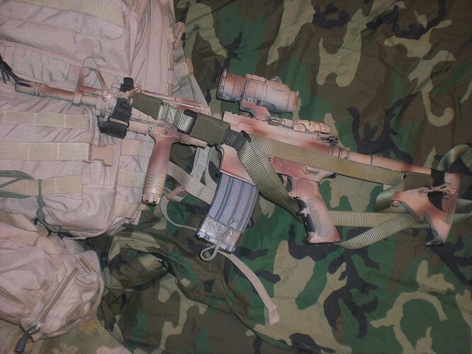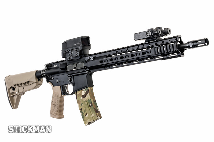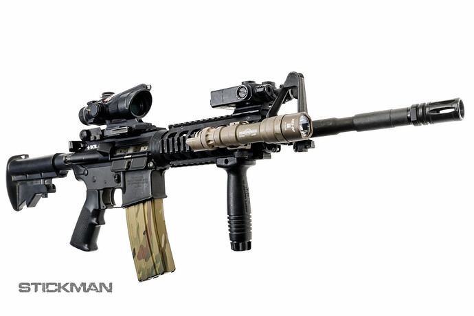 All the original parts are back on, but it has the KAC RAS, the Aimpoint, the DBAL, and a new Streamlight