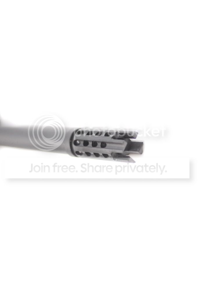 The flash hider was an interesting design. With the amount of holes that it has, it looks like a compensator for a .22LR, but it’s not a compensator because it’s definitely out of the barrel once it reaches this point.