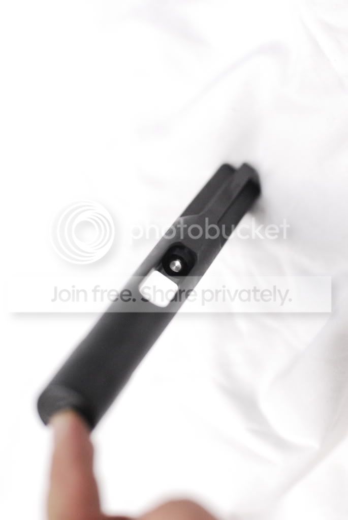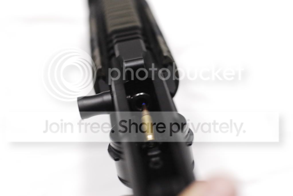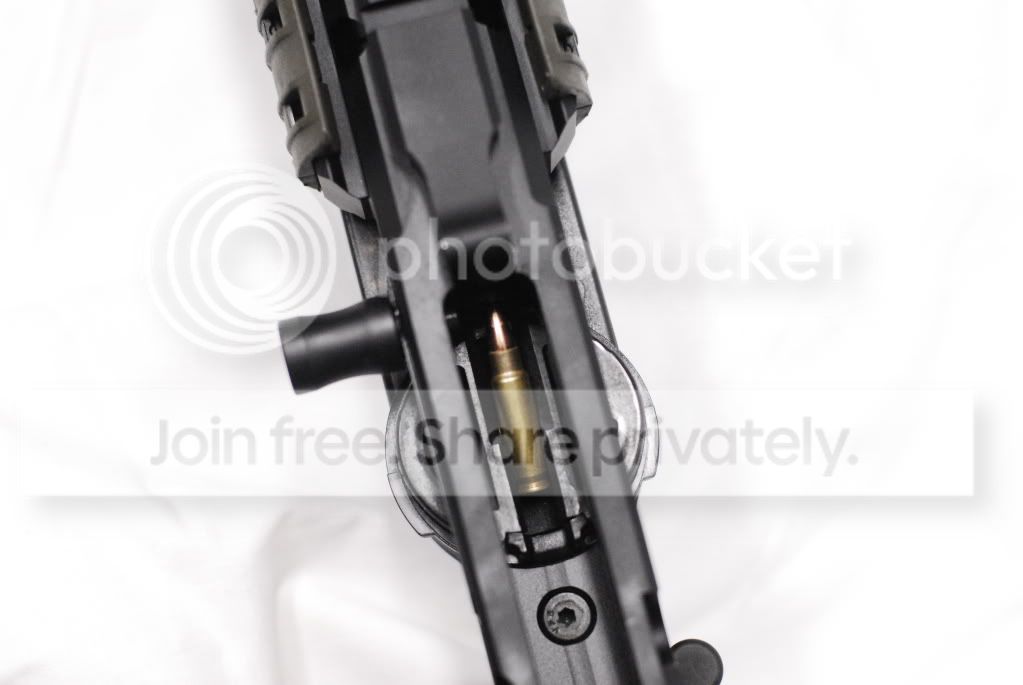Clean area for a blow-back system. The buffer is so heavy that the bolt doesn’t just engage the chamber, it slams against the barrel chamber hard when charged dry.