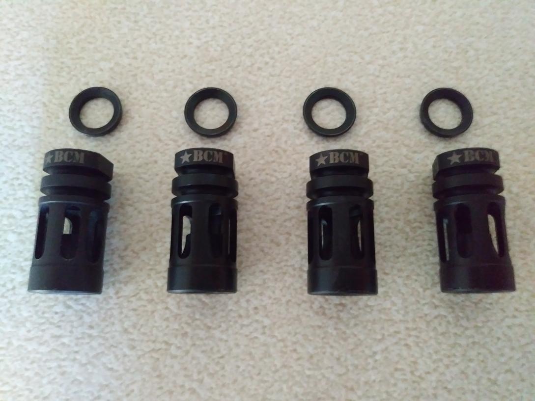 4 BCM compensators for sale (all Mod 0 – 5.56). 3 are like new and came off factory BCM uppers. 1 is used and has exactly 669 rounds through it.