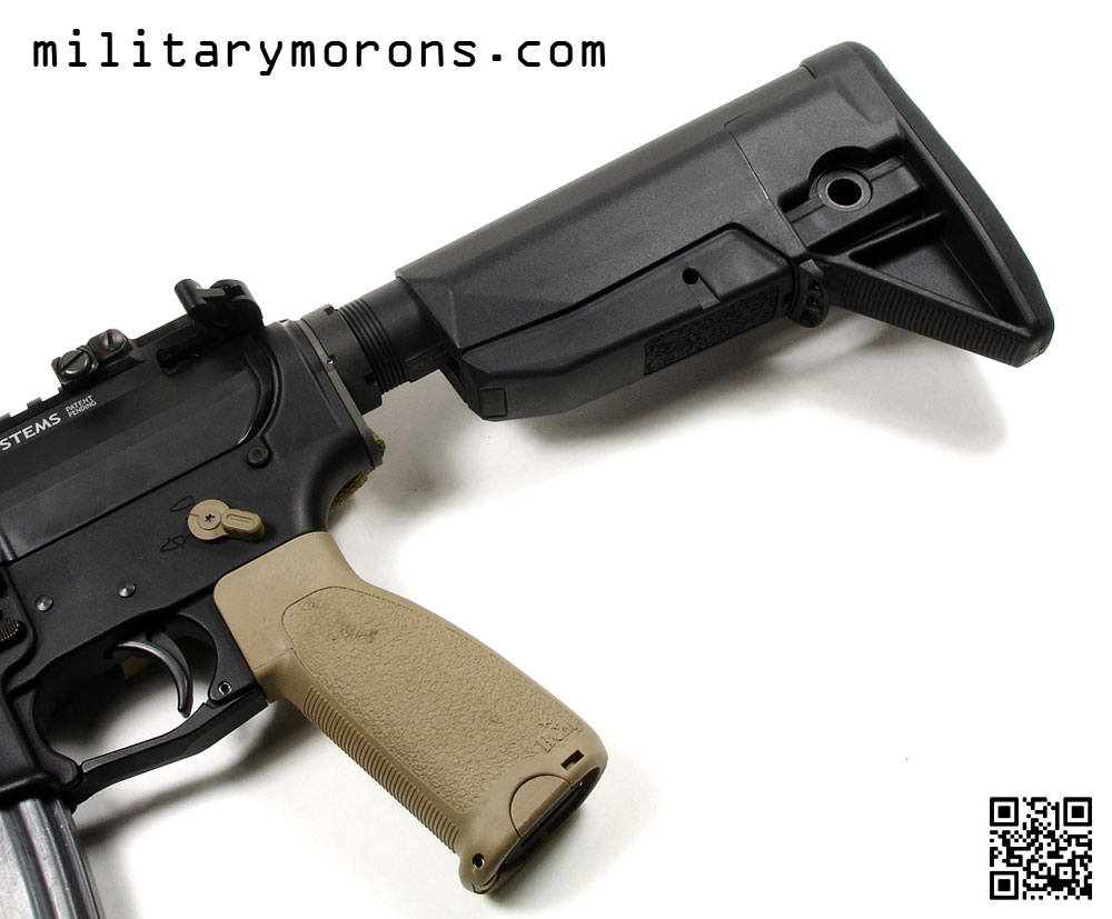 If a guy mortars on the toe of the stock, he’s retarded and can’t be helped no matter what. I’m sure the gunfighter stock is very stout, but that’s a lower priority characteristic to me.