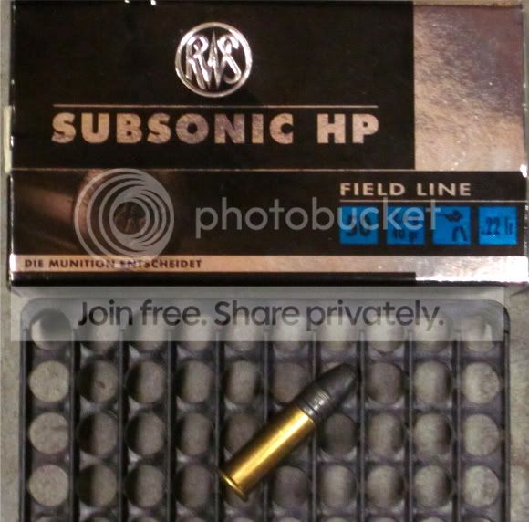 What was even a hair better than that is the now discontinued Eley Subsonic Xtra Plus HP. That shit would cut a cloverleaf 10-round group at 100 out of my 77/22, and has killed more pussy than Ted Bundy.