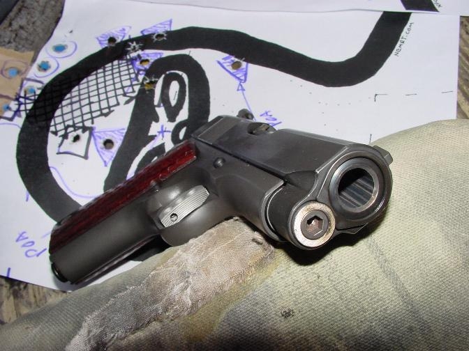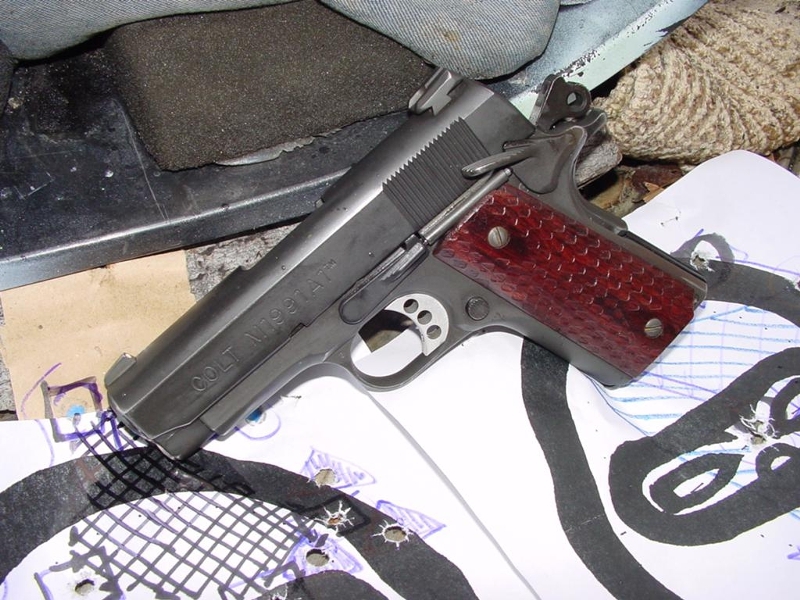 This is a carbon-steel OACP that a client of mine had worked on by Brian Bilby in the late '90’s. Nothing too elaborate,sights, reliability, 2-piece guide rod, trigger work. He subsequently had me go through it ( 3-4 years ago) and do a few things like a mild dehorning, re-crown the barrel, lighten the hammer, ream the chamber, and lock the trigger’s OT screw-- a few other odds and ends, then it was reParkerized. It’s had about 2200 rounds through it total. I’ve gone through it again to clean it up, check for any undue wear, cracks, what have you, and it’s fine. Replaced the magazine internals with a Tripp Super 7 kit which I feel is a big boon to reliability in these. Shot it with ball and two different kinds of hollow points-- POI is fine and grouping is a little better than most OACP’s with stock barrel.