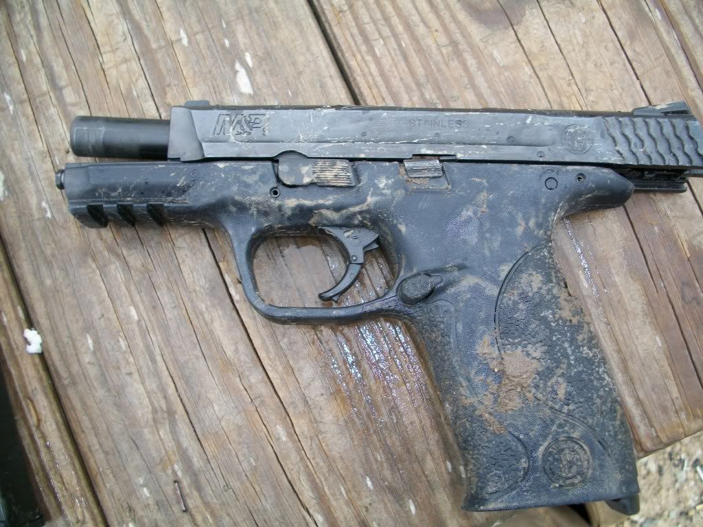 The action does not FEEL like it looks (nasty and poopy). It is very very smooth. To me, it feels like a perfectly clean, well lubed M&P action. We shall see what the 1000 round mark brings…I will probably keep it dirty and try another 500 or 1000 after that.