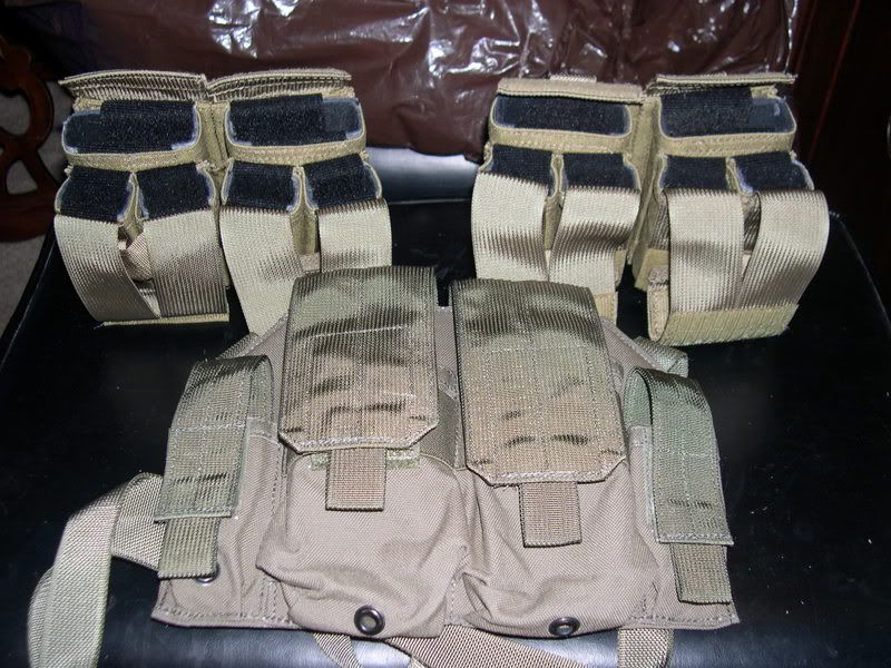 Eagle 2x4s (2 of them) MP2/M4-4/45-FBI-MS 9 (whew!) Molle, kydex inserts. Khaki color. These are killer but again, I got them in MC now. Mint. $55ea/$100 for both.