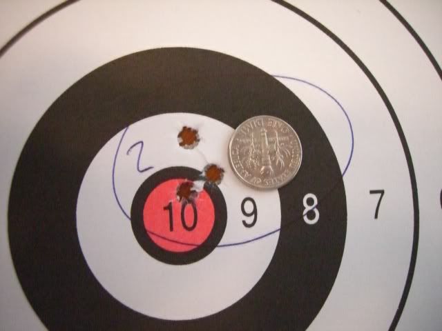 (the best dime-sized group at 25yd is just over 2 MOA)