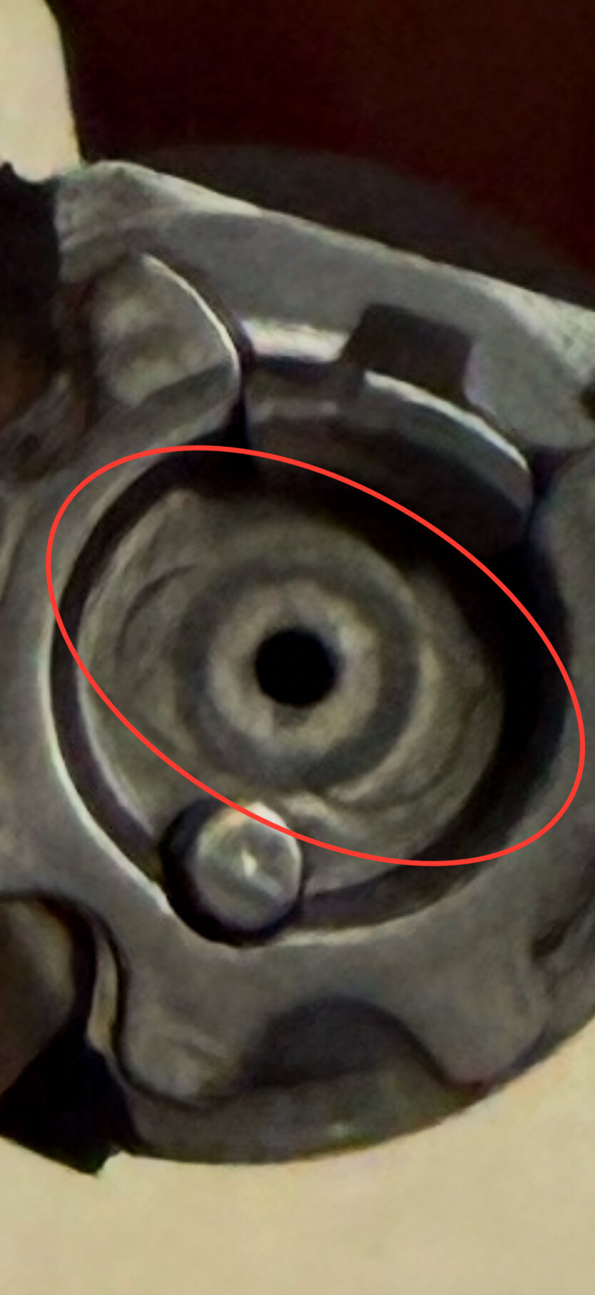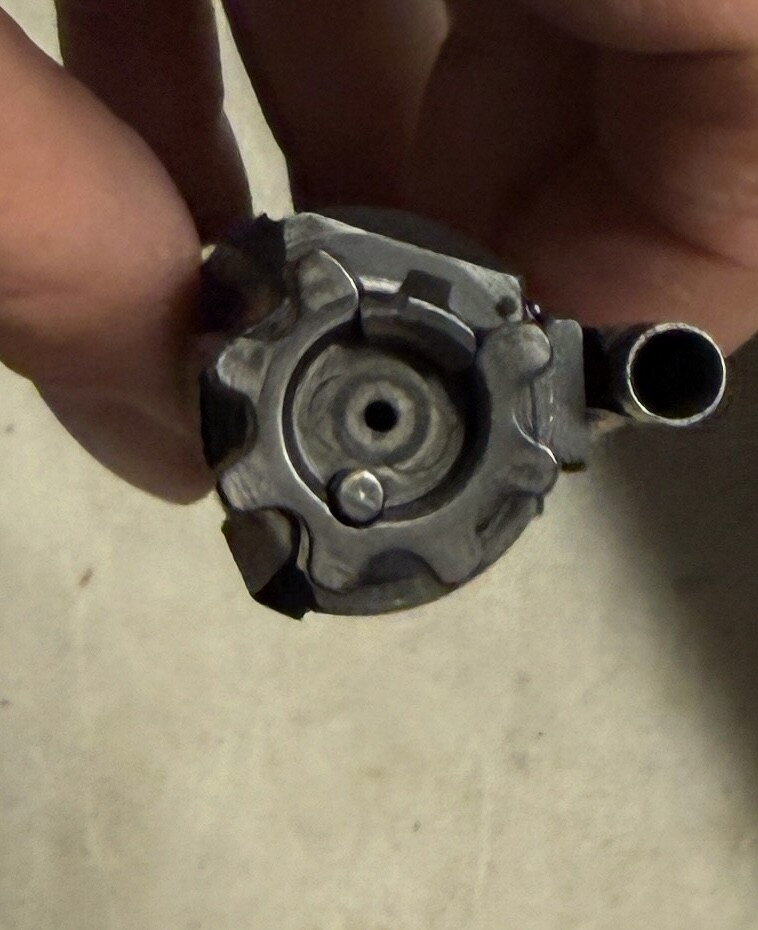 Doesn’t look problematic to me. It’s not where burst primers would damage/etch the bolt face.