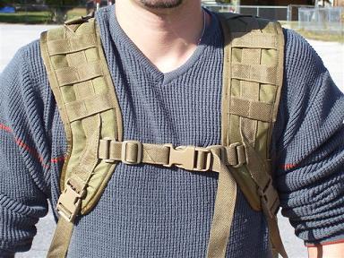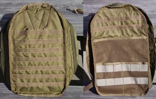 The pack is a three piece system with lots of PALS webbing, inside and out, to make it extremely modular.