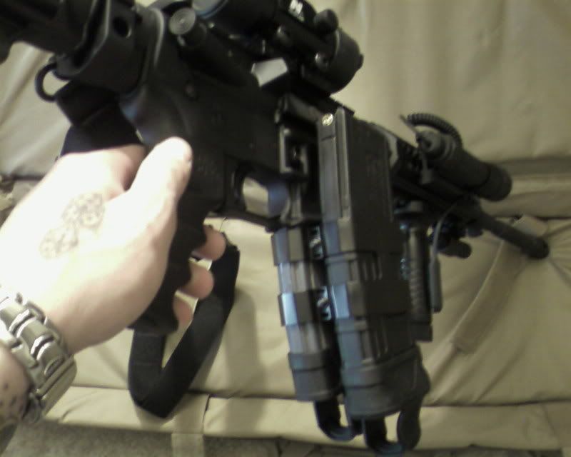 UTG Tactical light with touch pad on the fore grip.