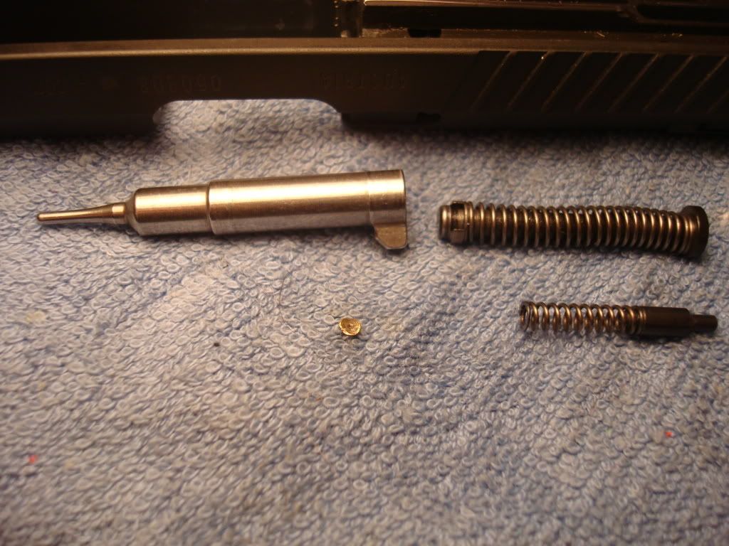 After removing the case, I ran 100 rounds through the gun without issue. A week after that I went to the range again and had sporadic failures to fire. The primers were untouched, and I was pretty stumped as to what was going on. I took the slide apart, and a brass price fell out of the firing pin/striker channel. I guess that when the primer failed, the cover was forced into the firing pin hole, and eventually was obstructing the striker.