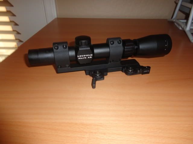 Leupold Mark AR 1-4 power scope. Mark AR series is built to the same ruggedness standards as the Leupold Mark 4 series but they lack illumination and I believe they use a lower quality glass. That being said the glass on this scope is pretty good. Almost new and barrely used. $225