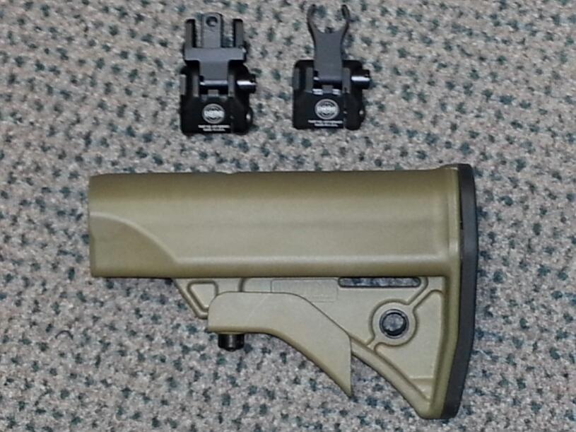 Guys, I have a brand new set of black skirmish sights with the sight tool and a FDE Compact Stock that I do not need as I have decided to go with a 1-4 scope and a different stock on my gun and these have to go. I just bought the rifle a month ago so these are the newest black LWRC marked skirmish sights and FDE compact stock they are producing. I am asking $130.00 shipped for the sights and $50.00 shipped for the stock to your door. I have priced them to sell as thesights are $209.00 and the stock is $60.00 from the online store. If you need a pic, I can accommodate that but they are brand new take off items from my rifle. Please email me at glockman@fuse.net with any questions or I will take its as I do not check this forum everyday. I do not belong to pay pal so a postal money order or certified check will do. If you want to send a personal check, that is fine too but I will wait till it clears my bank. I am not interested in any trades at this time. Thanks for looking… E1…