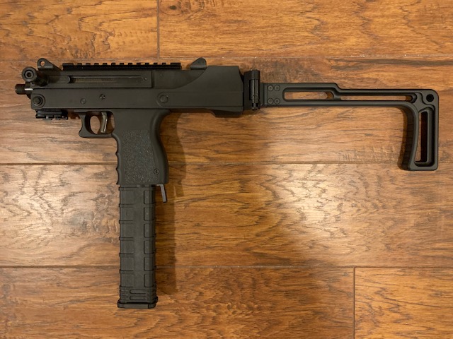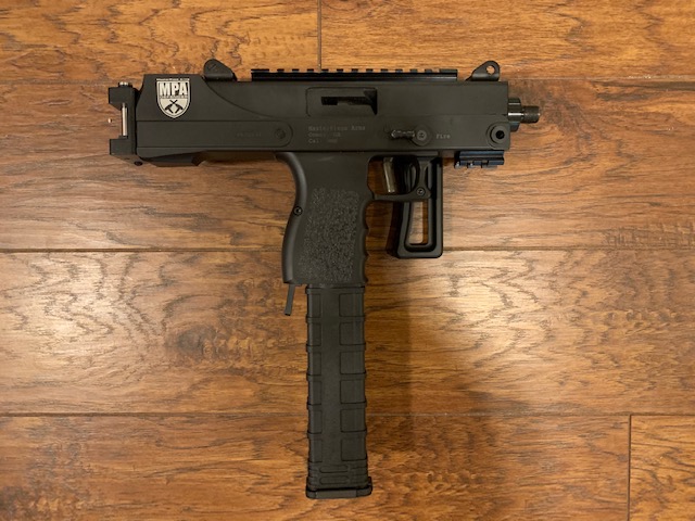 I have a 9mm Masterpiece Arms Defender which is basically a semiauto M11/9 with more modern touches. When I purchased it, I assumed that it wouldn’t be accurate. Actually, it’s very accurate. I used it to come in second place in a shooting competition at my work out of about twenty people. I decided to SBR it, so I purchased a a “factory” stock, efiled the Form 1 and had it engraved. He it is in all it’s glory. I think I need a front grip and I definitely need an optic.