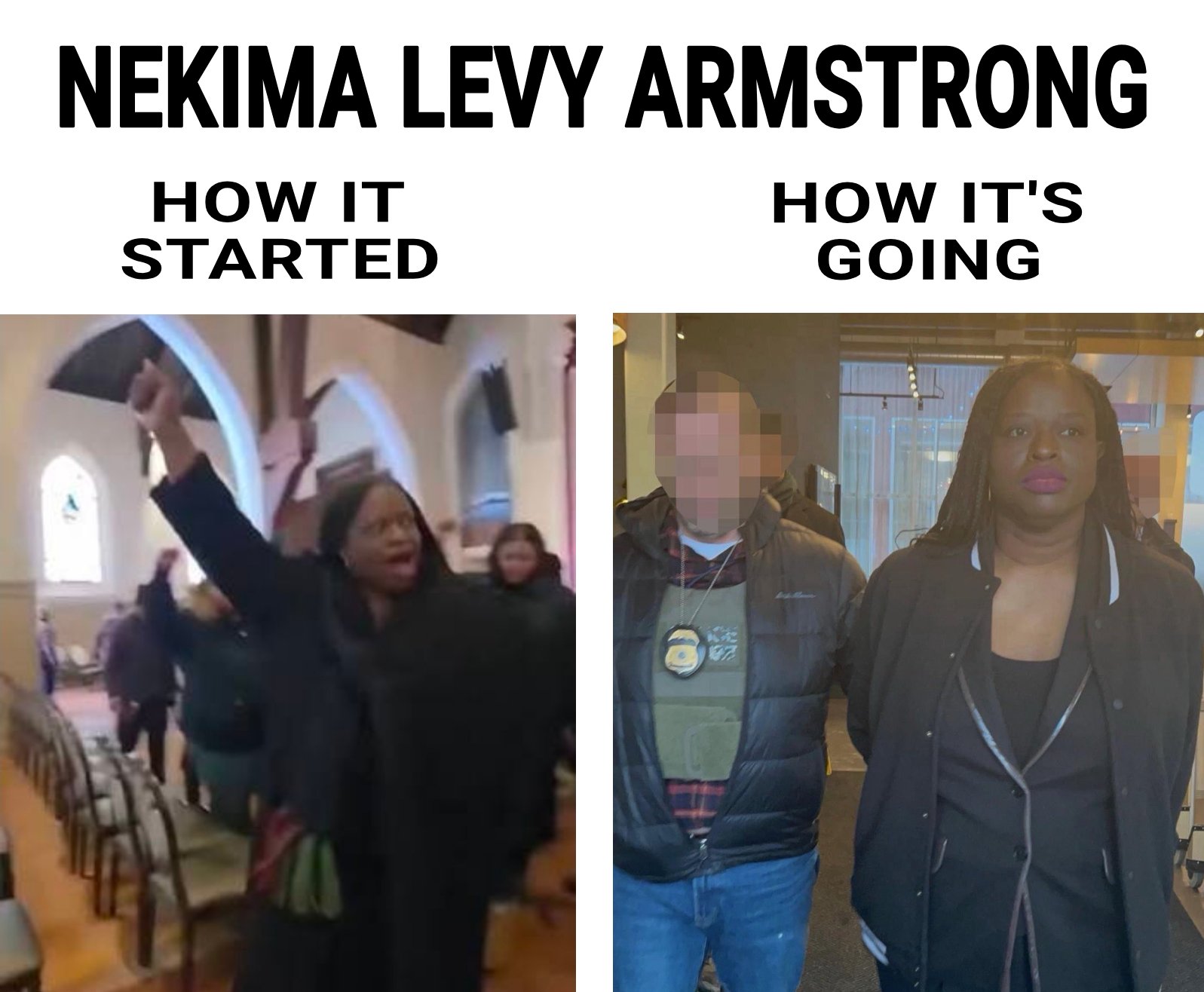 So far, 2 of the ringleaders have been arrested - Nekima Levy Armstrong and Chauntyll Louisa Allen - clowns all. Patiently awaiting the Don Lemon FBI dawn raid and frog march…