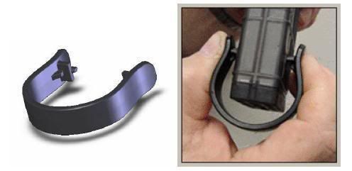 The Lancer Bottom Removal Tool is a simple accessory designed to aide in the removal of the L5’s bottom. The bottom was designed to be removed using live rounds for in the field disassembly. When live rounds are not available the use of the BRT ensures both tabs are depressed simultaneously, reducing the risk of damage to the tabs. The curved design ensures the bottom is captured as the tabs release.