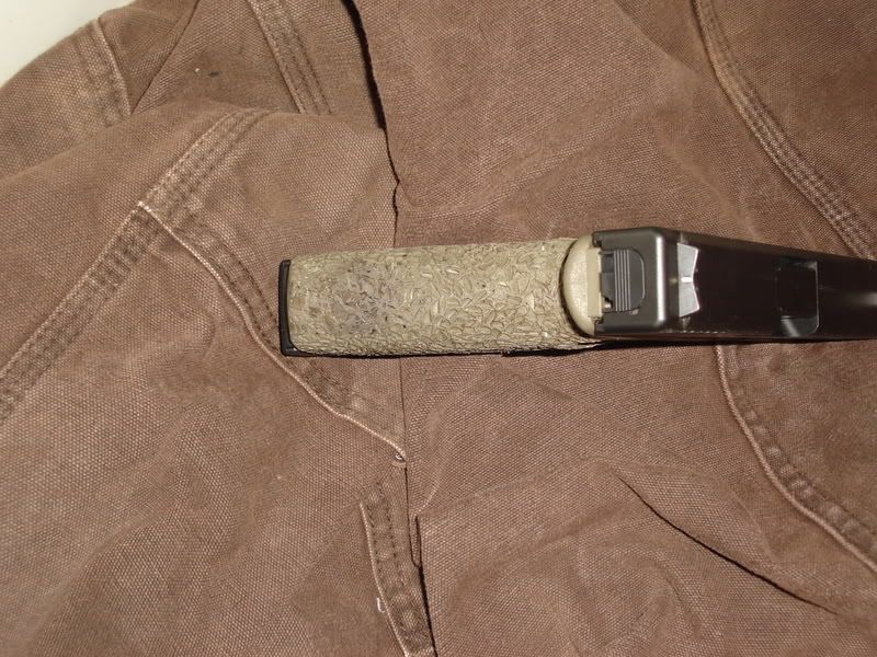 I guess that if cosmetics are a big concern, then any grip reduction is not for you. I think that all reductions look like doo-doo butter, hell I even think that factory Glocks look terrible. I see my guns as tools and to me, this makes them more comfortable to use. Reductions to me are to make the pistol more ergonomic, the grip angle is changed so that the pistol will point much like a 1911, which is more natural to most. The texturing is a personal preference, and I just that this pattern is both comfortable enough for all day shooting and provides enough grip to keep you hand in place, if a customer would want different texturing, I would be happy to oblidge.