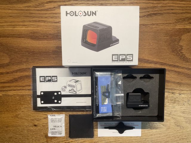 New and unused in the box in perfect condition with no flaw or blemish - Holosun EPS RDS ( 2 MOA dot ) . It comes with all the hardware, screws, wrench, mounting plate, owners manual, etc. $275. * shipped* and no sales tax. Payment would be by a USPS or bank money order or by Zelle. I have no other payment options available and no trades are needed at this time.