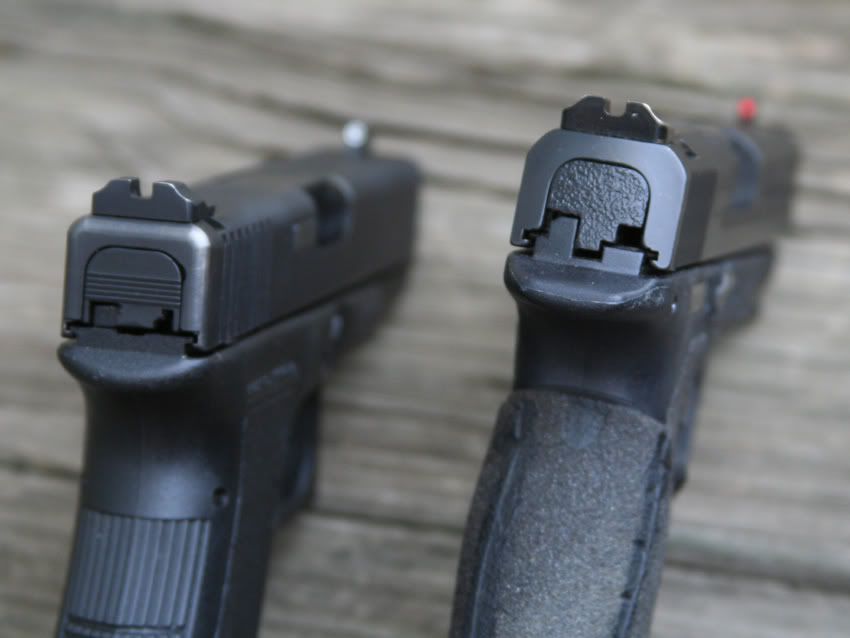 I have Heinies with the CGR “race cut” (wide notch) on my G19. I have a tritium front and black rear.