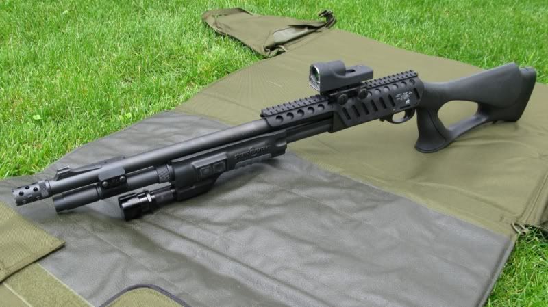 I’ve shot the Speedfeed pistol grip stock on a couple less-lethal 870’s we have at work. Not bad as far as the pistol grip goes, but a less-lethal sock round is quite a bit less recoil than a 00buck or slugs, so I can’t comment on the effectiveness of controlling recoil. That being said, get what you want, all of us usually change something of this nature after a few classes/schools. I will say that the SureFire forearm is the only way to go for a light on a scattergun. As serious student pointed out everyone I know has come back to it after trying something different first. I use it on my work gun and my personal 870. I know they aren’t cheap, but you can check the for sale sections on the forums and even ebay. A coworker scored one on ebay, new in box for less than half retail. Have fun with it.