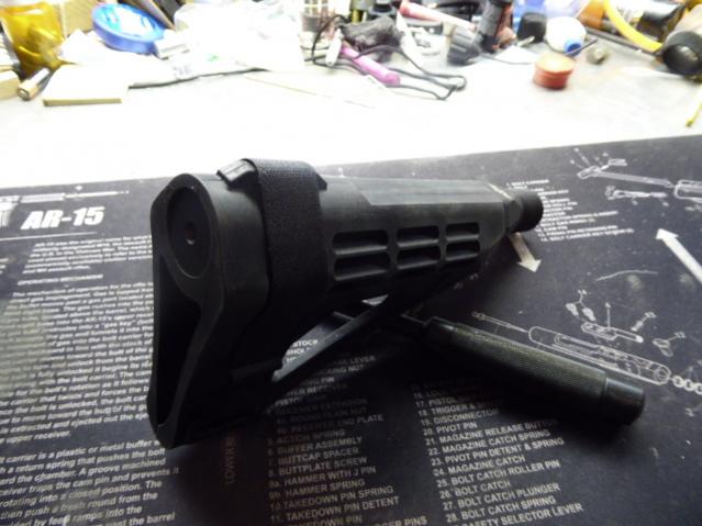 SBM4 mounted to APF pistol tube, looks good and feels great! Brace is a snug fit with no sliding side to side. Angles of APF tube match up perfectly with brace and have a built in stop to keep the brace at a comfortable distance from the receiver. This tube was made specifically for this brace. The end of the tube is drilled for a drain hole / pressure relief and extends to a flush fit with the brace. No extra unsuported space at the end of the brace as with other tubes. Brace and tube both made with clearance for charging handle pull full to rear with no binding. Approx 9 1/8" from but to end plate, standard tube 6 7/8", Colt fiberlite 6 5/8" (both with nose way over CH). Combined weight of 1lb 1.8oz APF + SBM4. This rig has been to the range one time and is in as new condition and had great balance. Going SBR and no longer need it. SBM4 was $150 + APF pistol tube was $50. Selling both as a package for $100