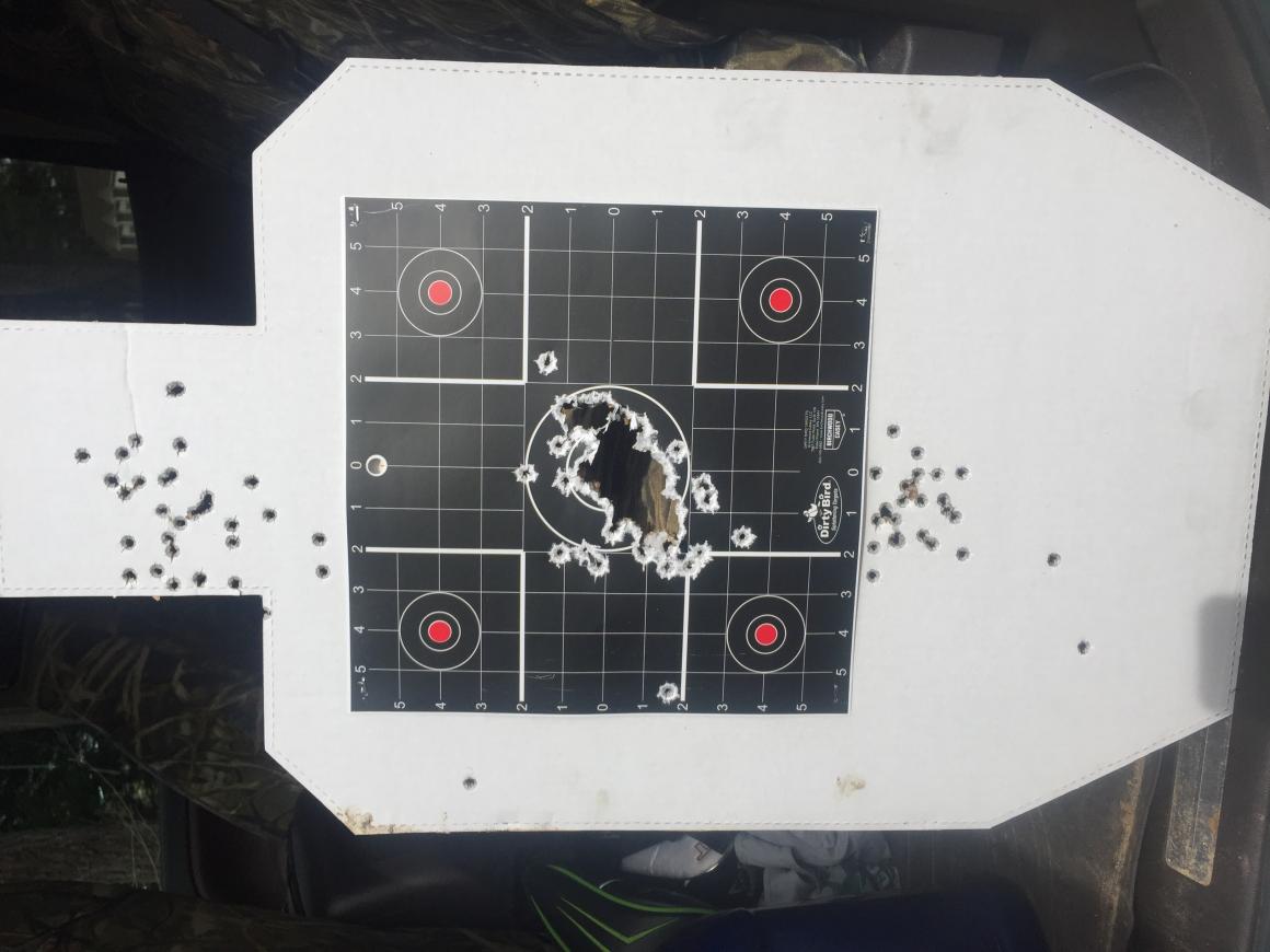 I’ve got old eyes also and the RDS is a definite benefit with longer shots. Below is a pic of my target at 25 yards. Except for a few trigger snatches it was easy keeping everything pretty tight. The top and bottom shots were done after sighting in at 10 yards and going out to 25. The center is my last 100 rounds. I was also shooting Winchester white box stuff. I’ve always heard bad stuff about the WWB ammo but other than it being dirty as can be I didn’t have any malfunctions and it was fairly accurate out of this gun. I’ve never had ammo smoke as bad as this stuff did though. It was really noticeable at times. Almost as bad as black powder, well not quite that bad but i definitely noticed white smoke going past my face more than a few times.