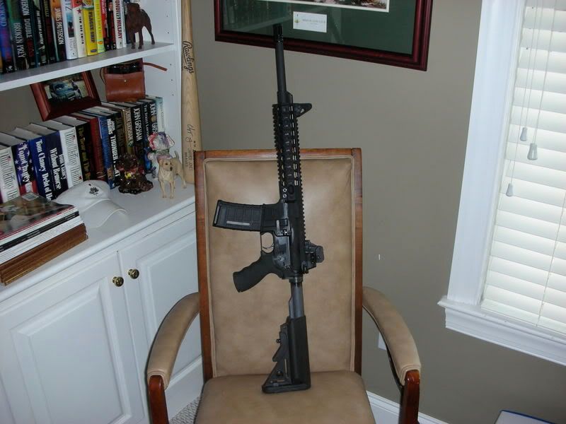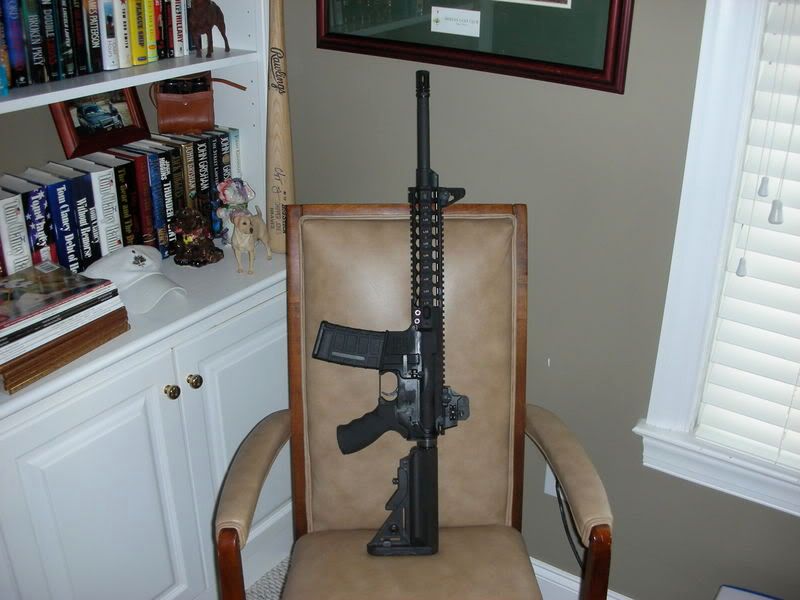 I have been waiting on this rifle for a while now and it was well worth the wait. I dont need to go into any detail on this board as most of you have forgotten more about black rifles than I will ever know. It is a CQB MRP 16". I will say the thing is built like a tank and the fit and finish is excellent. It was built on 1/22/09 and in my grubby paws today. Now I need to find the right optics for it and I will be set.