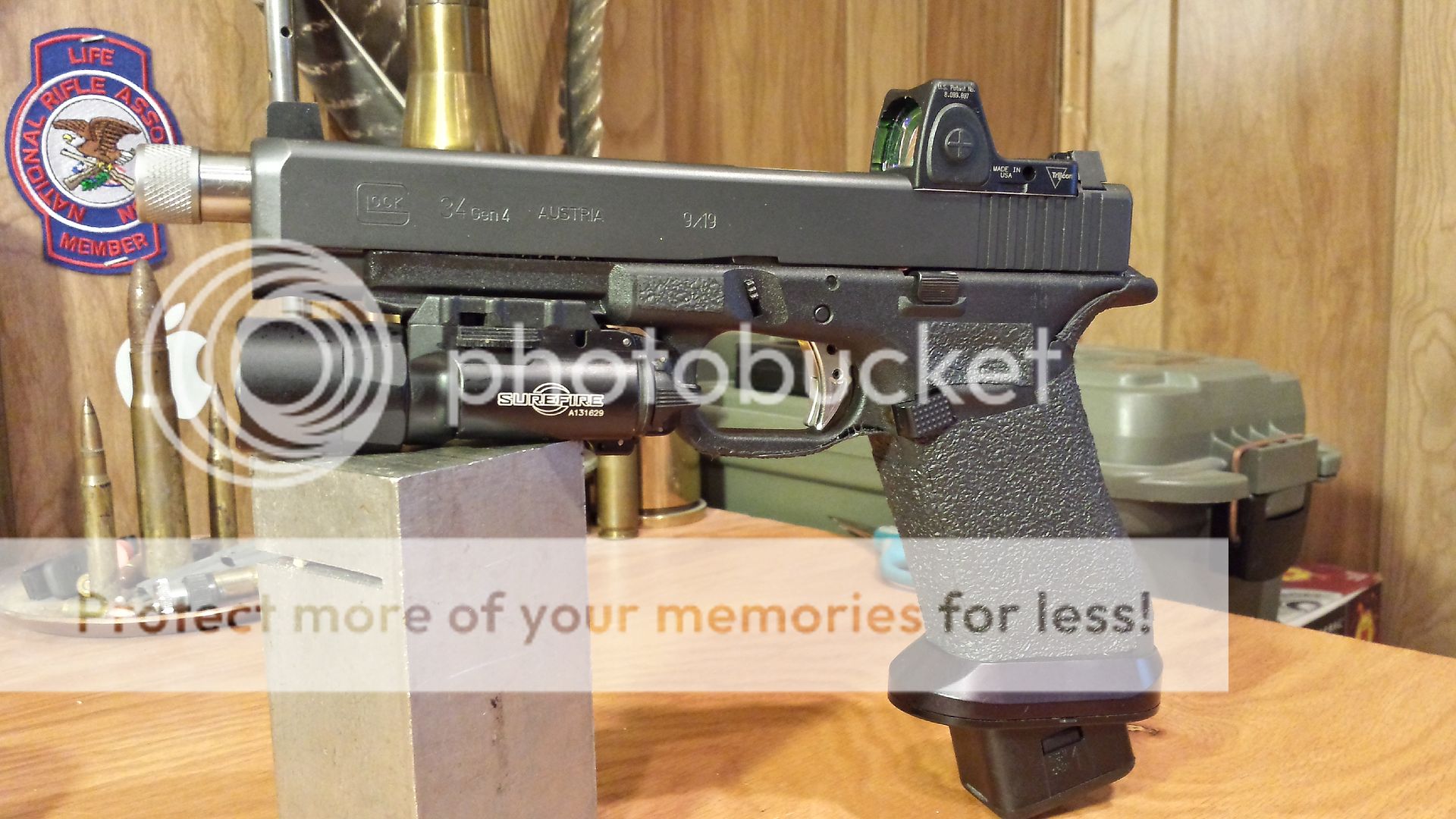 The sight itself is extremely rugged and I’m glad I went with Trijicon. I had no problems with the glass fogging or blurring at any point. I’m still getting used to racking the slide using the sight to assist, which is pretty important since racking the slide with an overhand motion as I was used to doing without the RMR on it is now different. I have the sight anchored down firmly on to the milled slide, using Locktite (blue). I purchased a milled slide for my Glock 34 from One Source Tactical and I’m very pleased with the quality and service they offered.