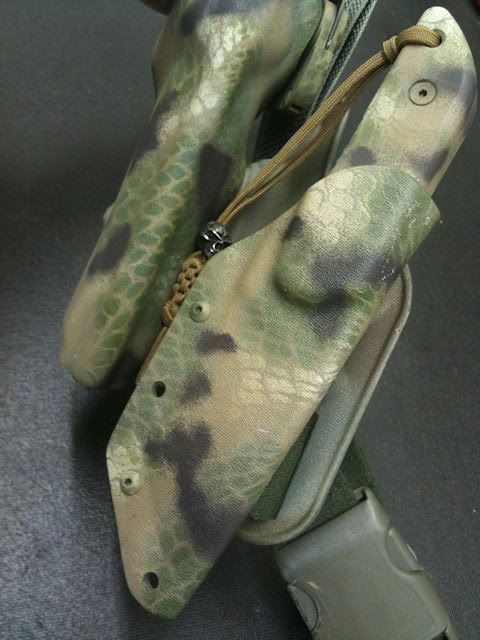 Just as the title says, I’ve had this knife for a while, just never posted any photos of it. I also had my holster and sheath done at the same time. It was done by UpArmor in their GeoCam patern.
