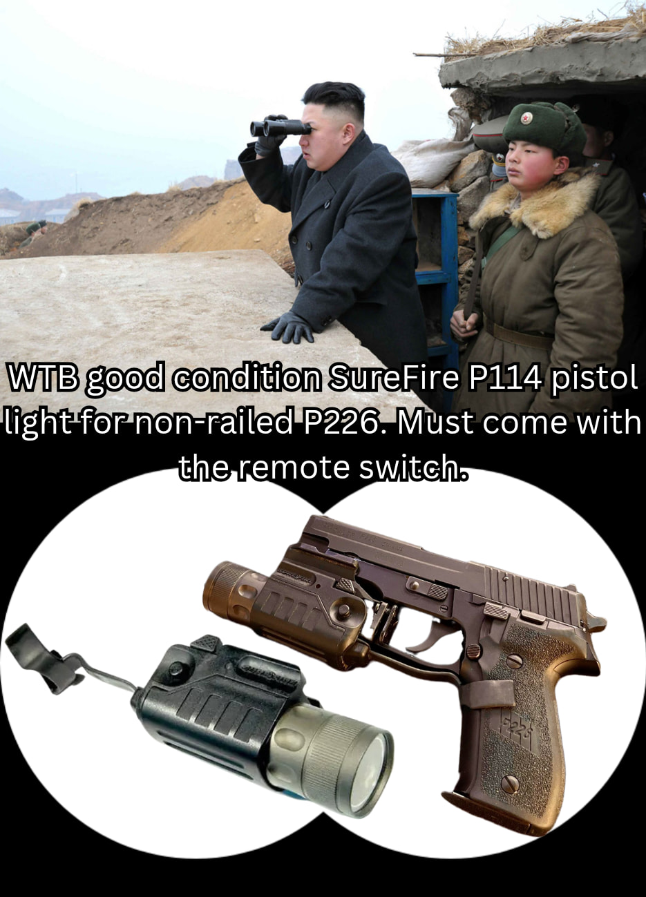 Hunting for a good condition SureFire P114 pistol light for non-railed Sig P226. Looking for one that comes with the remote switch that extends to the pistols grip, as pictured. Just bought a P226 Navy and it needs a proper light - $300 OBO