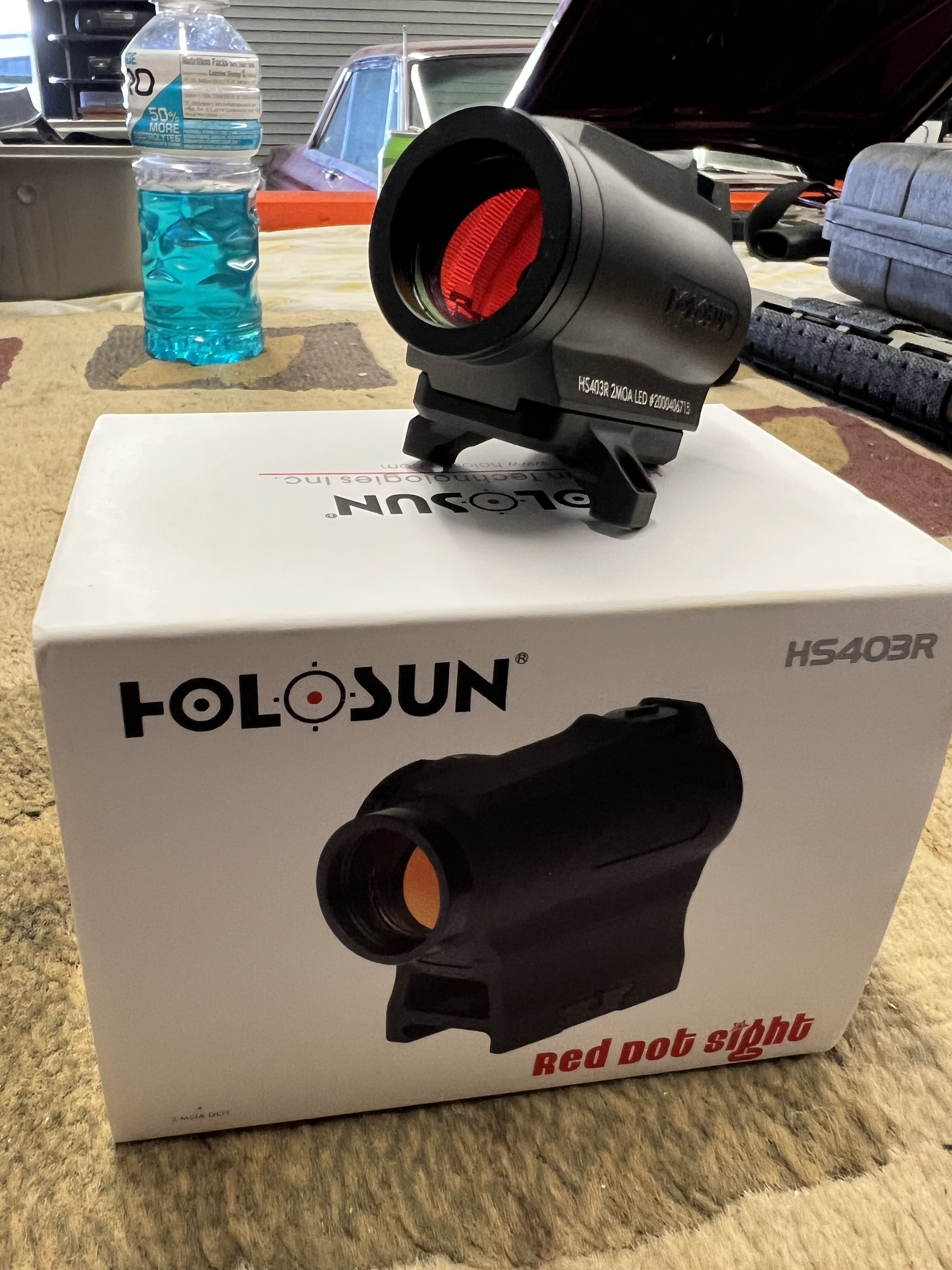 Holosun 403r, unused, mounted on trexarms ta02 Acog mount, box included