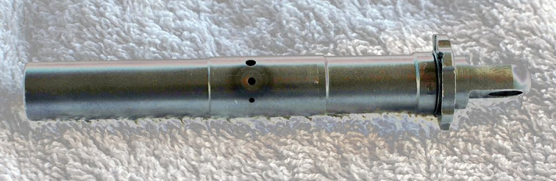 The Piston (right) goes inside the Gas Valve (left). Again, you can see those mini gas rings on the Piston. Because of those rings when the Piston and Gas Valve are together it creates a seal that requires a little bit of force to pull apart (just like when removing the Bolt from the Bolt Carrier). This is why I'm thinking there SHOULD be lube on those mini gas ring, but I could be wrong. You can also see carbon fouling on the face of the Piston where it was tested at the factory.