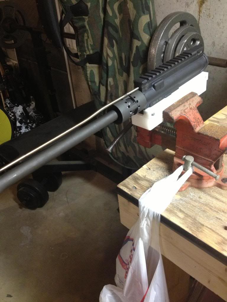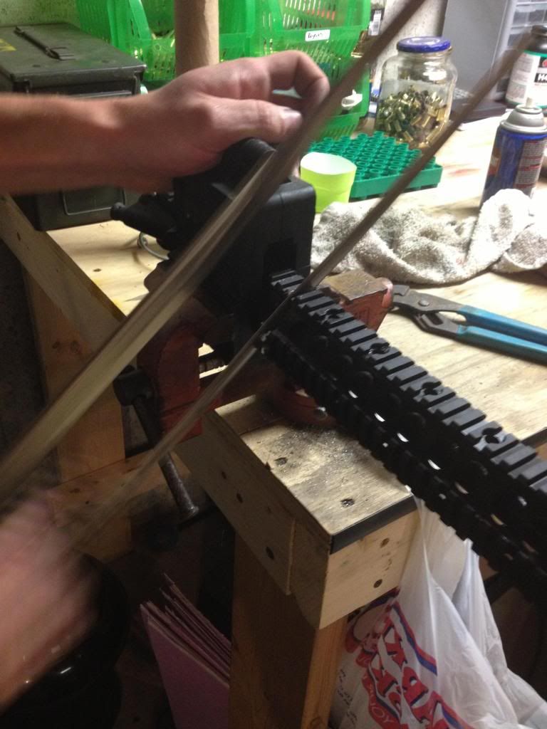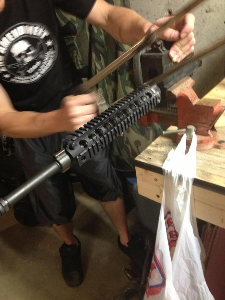 So my good buddy bought a Noveske nsr 13.5" rail and is very impatient to say the least. What happened in my basement last night is going to be considered blasphemy to most including myself. But... He's my friend and this is what he wanted. See if this doesn't make you cringe. BTW a local shop has the Urx wrench and would have taken it off on Tuesday. This was Saturday. Enjoy