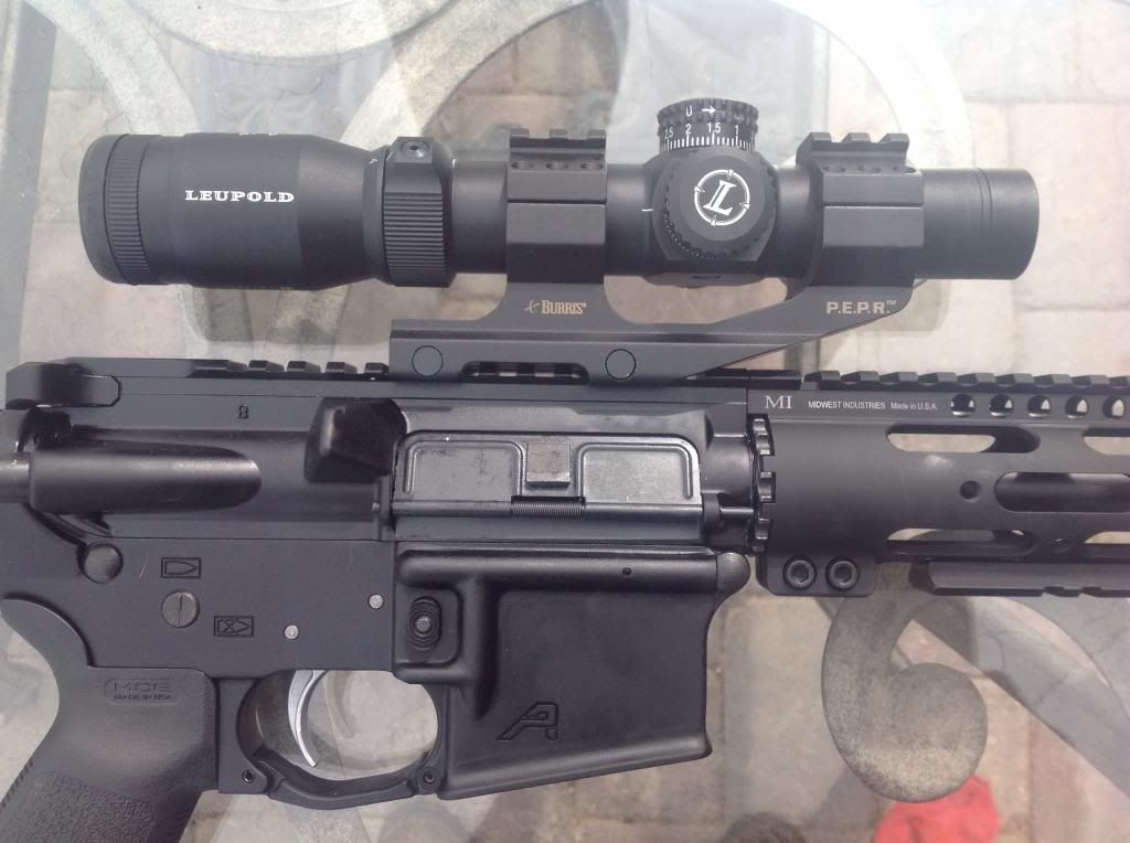 I am using a Brownell's black phosphate M-16 BCG with a BCM Gunfighter Med latch charging handle. To top it off, I have a Leupold VX-R Patrol 1.25-4X20 lighted SPR mounted in a Burris P.E.P.R. I have been very happy with the Burris mount on previous builds. It does the job.