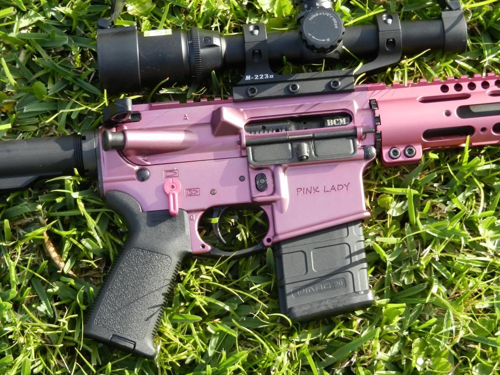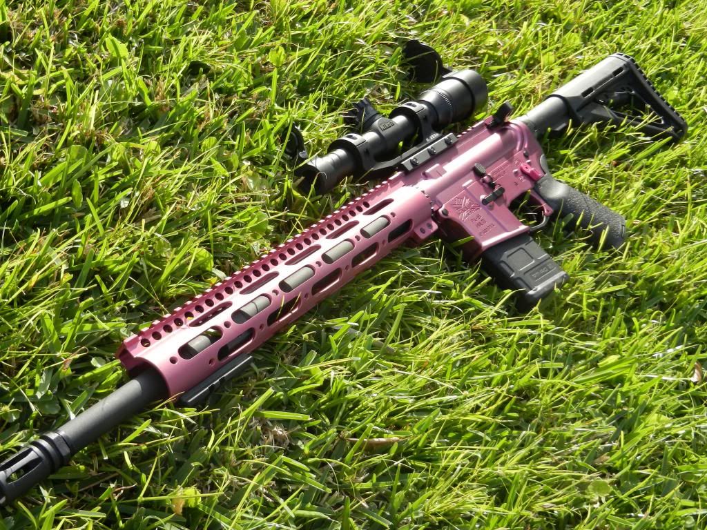 Looks good. I've been toying around with the idea of building up a pink one for my "special lady" as well. Going to start with a M&P 15-22 and work up from there (she's pretty sensitive to the noise . . . figure that's a good excuse for a suppressor!). Figured I'd keep it black and add the pink Magpul furniture first.