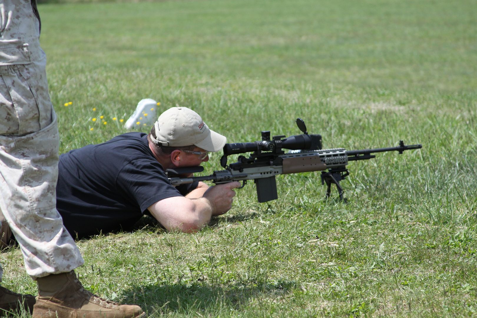 Stage 1 : Rifle only stage on Quanticos Range 4 all at 300yds (all rifle obviously). Little 25yd jog to your rifle (or their M16A4 w/ACOG) prone out and shoot 4 resetting LaRue steel 30 rounds max allow (at lease one hit on each), then leave your gun run 25yds to the iron sighted FAL (USMC supplied with 10 rounds) prone out and shoot 4 steel IPSC targets with at least one hit each, then leave it and run to the EMR (accurized M14 in a SAGE chassis with a S&B scope, USMC supplied w/10 rounds). Prone out and shoot at the same four LaRue targets as you did with your rifle, leave it and run 25yds or so to a M40A3 (USMC provided with 6 rounds) prone out and shoot those same LaRue steel with at least one hit each. That FAL was the hardest obviously the FAL, EMR and M40A3 were all loaded with M118LR which made it a little easier but that FALs front sight almost completely covered the steel IPSC targets it took me all 10 rounds to get the four hits on the targets.