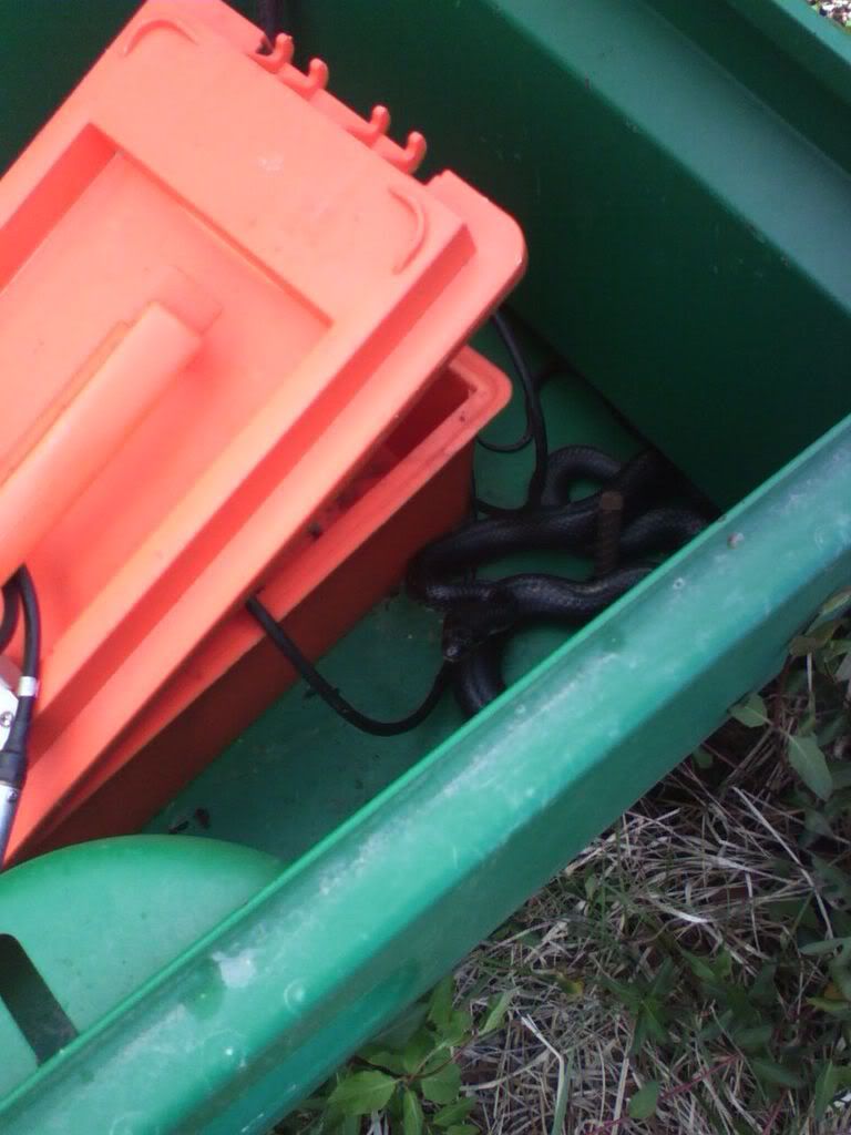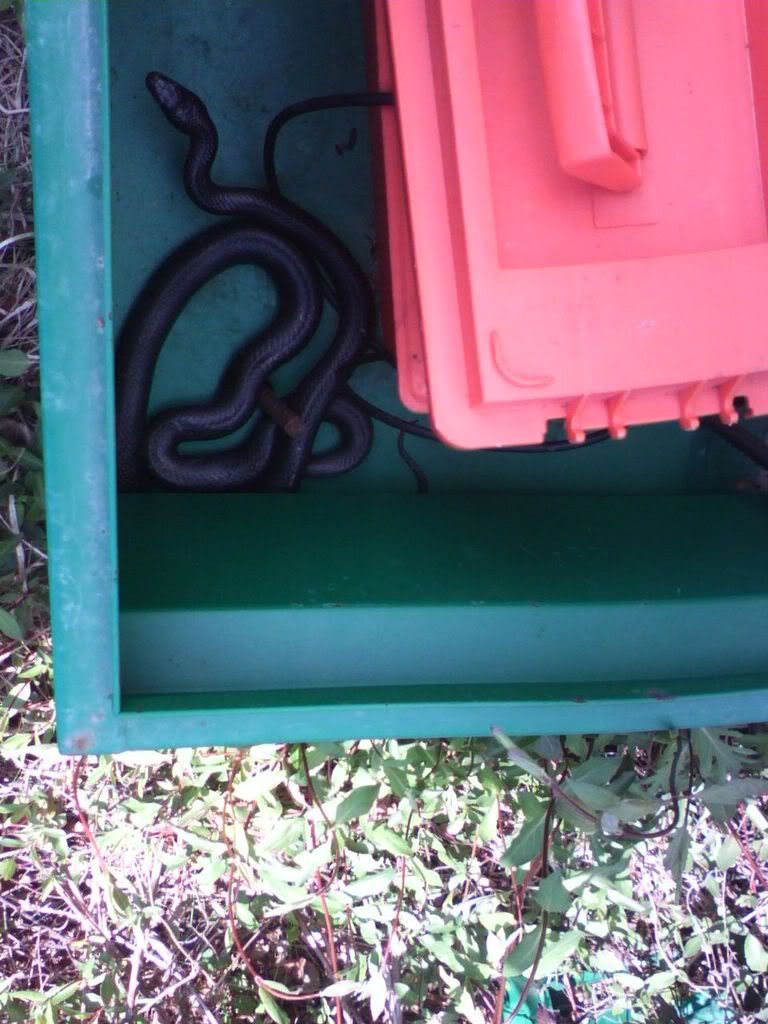 If he'd been a blacksnake, I would have had a conversation with him and reasoned with him to move along, like this fellow I found in one of my seismograph boxes earlier this year....