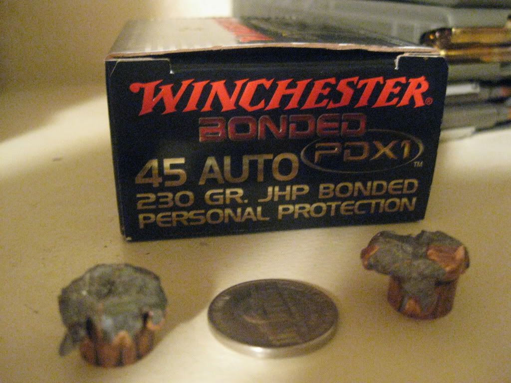 I was using my newly purchased Winchester 230gr PDX1 Bonded rounds. They instilled a lot of faith in me. Anyways, heres some pictures.