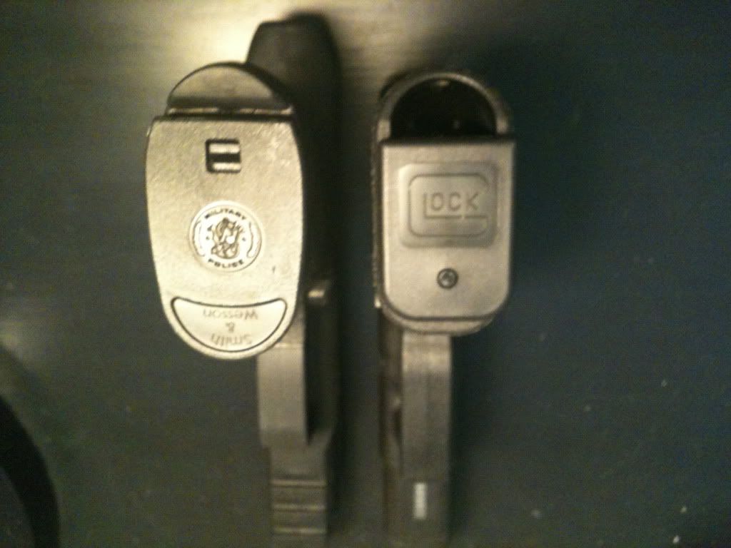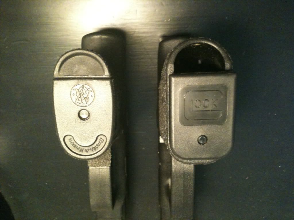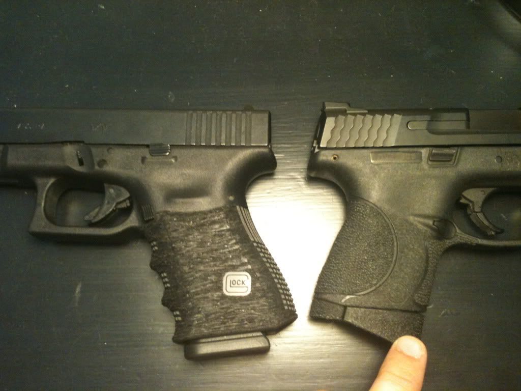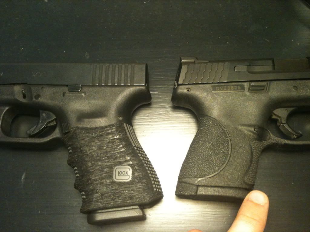 I'm going back to Glocks from M&Ps. Before I sell the Smiths, here's a series of pics comparing the Glock 19 with the M&P9FS and the M&P9c. Hopefully you'll find 'em helpful if you're considering a switch.
