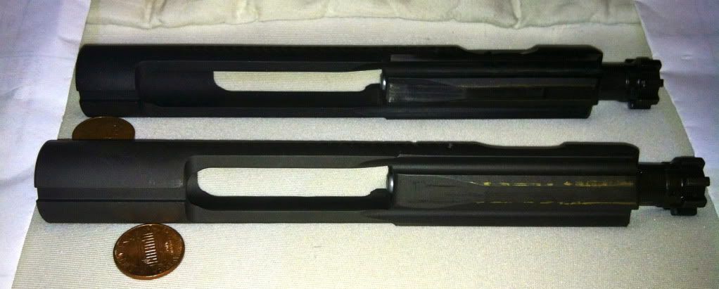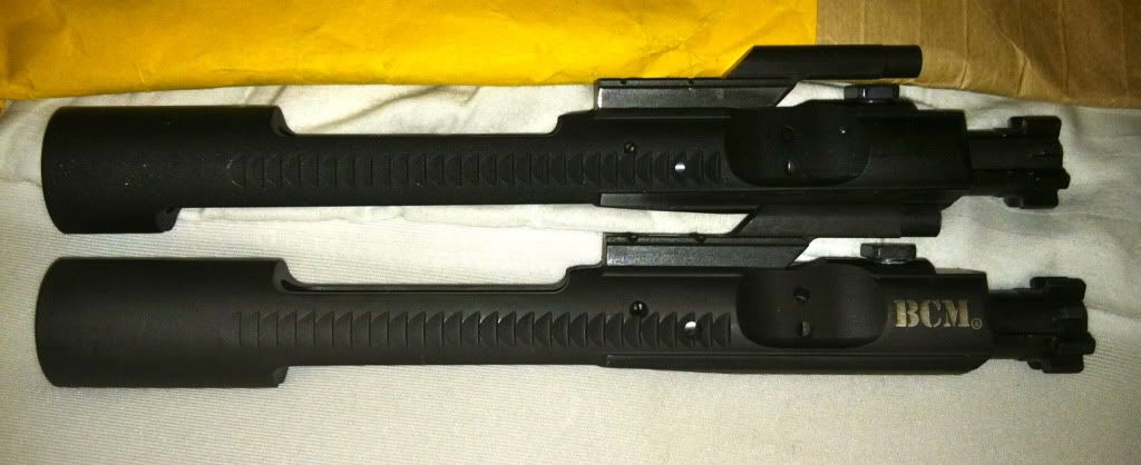IIRC, the Bushmaster is an AR style carrier and the others are the M16 style. this will improve reliability as well as add mass that can help with the issue concerning buffer weight and spring...